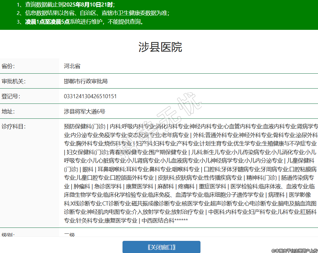 省份:河北省審批機(jī)關(guān):邯鄲市行政審批局登記號(hào):033124130426510151地址:涉縣將軍大道6號(hào)診療科目:預(yù)防保健科(門診) | 內(nèi)科;呼吸內(nèi)科專業(yè);消化內(nèi)科專業(yè);神經(jīng)內(nèi)科專業(yè);心血管內(nèi)科專業(yè);血液內(nèi)科專業(yè);腎病學(xué)專業(yè);內(nèi)分泌專業(yè);免疫學(xué)專業(yè);變態(tài)反應(yīng)專業(yè);老年病專業(yè) | 外科;普通外科專業(yè);神經(jīng)外科專業(yè);骨科專業(yè);泌尿外科專業(yè);胸外科專業(yè);燒傷科專業(yè) | 婦產(chǎn)科;婦科專業(yè);產(chǎn)科專業(yè);計(jì)劃生育專業(yè);優(yōu)生學(xué)專業(yè);生殖健康與不孕癥專業(yè) | 婦女保健科(門診);青春期保健專業(yè);圍產(chǎn)期保健專業(yè) | 兒科;新生兒專業(yè);小兒傳染病專業(yè);小兒消化專業(yè);小兒呼吸專業(yè);小兒心臟病專業(yè);小兒腎病專業(yè);小兒血液病專業(yè);小兒神經(jīng)病學(xué)專業(yè);小兒內(nèi)分泌專業(yè) | 兒童保健科(門診) | 眼科 | 耳鼻咽喉科;耳科專業(yè);鼻科專業(yè);咽喉科專業(yè) | 口腔科;牙體牙髓病專業(yè);牙周病專業(yè);口腔粘膜病專業(yè);兒童口腔專業(yè);口腔頜面外科專業(yè) | 皮膚科;皮膚病專業(yè);性傳播疾病專業(yè) | 精神科(門診) | 腸道傳染病專業(yè) | 腫瘤科 | 急診醫(yī)學(xué)科 | 康復(fù)醫(yī)學(xué)科 | 麻醉科 | 疼痛科 | 重癥醫(yī)學(xué)科 | 醫(yī)學(xué)檢驗(yàn)科;臨床體液、血液專業(yè);臨床微生物學(xué)專業(yè);臨床化學(xué)檢驗(yàn)專業(yè);臨床免疫、血清學(xué)專業(yè);臨床細(xì)胞分子遺傳學(xué)專業(yè) | 病理科 | 醫(yī)學(xué)影像科;X線診斷專業(yè);CT診斷專業(yè);磁共振成像診斷專業(yè);核醫(yī)學(xué)專業(yè);超聲診斷專業(yè);心電診斷專業(yè);腦電及腦血流圖診斷專業(yè);神經(jīng)肌肉電圖專業(yè);介入放射學(xué)專業(yè);放射治療專業(yè) | 中醫(yī)科;內(nèi)科專業(yè);婦產(chǎn)科專業(yè);兒科專業(yè);肛腸科專業(yè);針灸科專業(yè);康復(fù)醫(yī)學(xué)專業(yè) | 中西醫(yī)結(jié)合科******級(jí)別:二級(jí)法定代表人:付彩文主要負(fù)責(zé)人:付彩文執(zhí)業(yè)許可證有效期:2025/05/15 -至- 2040/05/14 -