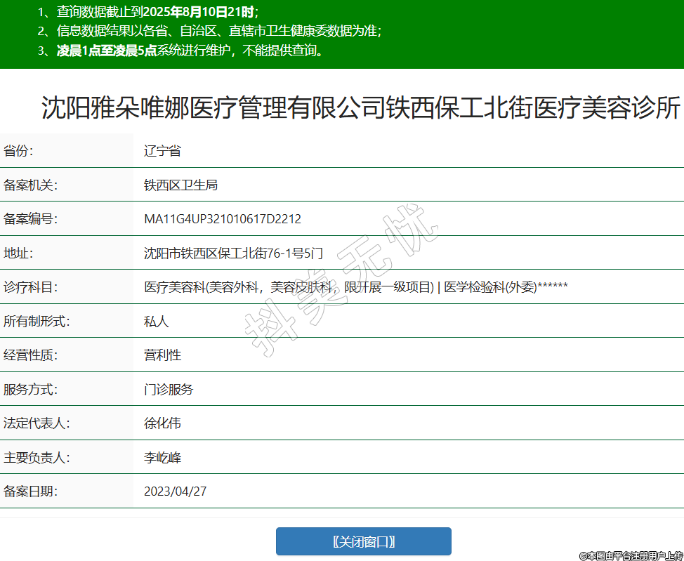 沈陽雅朵唯娜醫(yī)療管理有限公司鐵西保工北街醫(yī)療美容診所
