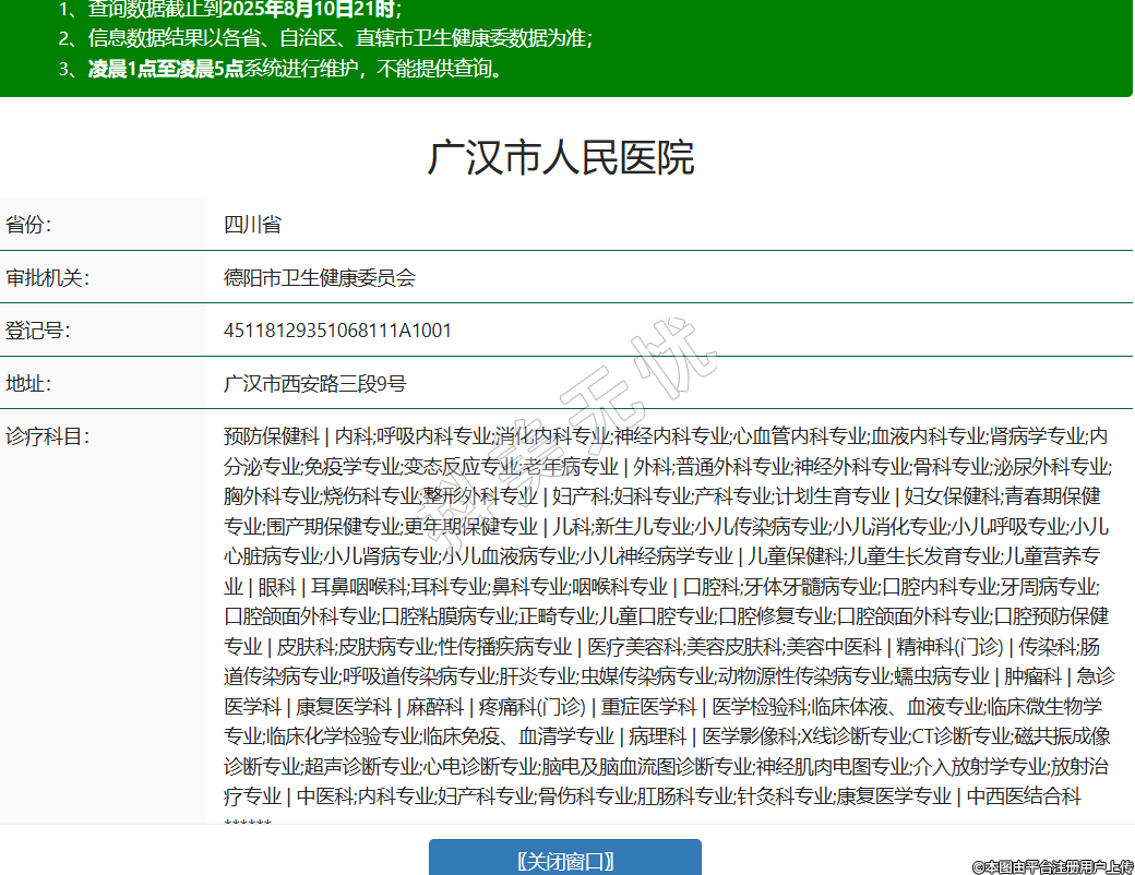 省份:四川省審批機關:德陽市衛(wèi)生健康委員會登記號:45118129351068111A1001地址:廣漢市西安路三段9號診療科目:預防保健科 | 內(nèi)科;呼吸內(nèi)科專業(yè);消化內(nèi)科專業(yè);神經(jīng)內(nèi)科專業(yè);心血管內(nèi)科專業(yè);血液內(nèi)科專業(yè);腎病學專業(yè);內(nèi)分泌專業(yè);免疫學專業(yè);變態(tài)反應專業(yè);老年病專業(yè) | 外科;普通外科專業(yè);神經(jīng)外科專業(yè);骨科專業(yè);泌尿外科專業(yè);胸外科專業(yè);燒傷科專業(yè);整形外科專業(yè) | 婦產(chǎn)科;婦科專業(yè);產(chǎn)科專業(yè);計劃生育專業(yè) | 婦女保健科;青春期保健專業(yè);圍產(chǎn)期保健專業(yè);更年期保健專業(yè) | 兒科;新生兒專業(yè);小兒傳染病專業(yè);小兒消化專業(yè);小兒呼吸專業(yè);小兒心臟病專業(yè);小兒腎病專業(yè);小兒血液病專業(yè);小兒神經(jīng)病學專業(yè) | 兒童保健科;兒童生長發(fā)育專業(yè);兒童營養(yǎng)專業(yè) | 眼科 | 耳鼻咽喉科;耳科專業(yè);鼻科專業(yè);咽喉科專業(yè) | 口腔科;牙體牙髓病專業(yè);口腔內(nèi)科專業(yè);牙周病專業(yè);口腔頜面外科專業(yè);口腔粘膜病專業(yè);正畸專業(yè);兒童口腔專業(yè);口腔修復專業(yè);口腔頜面外科專業(yè);口腔預防保健專業(yè) | 皮膚科;皮膚病專業(yè);性傳播疾病專業(yè) | 醫(yī)療美容科;美容皮膚科;美容中醫(yī)科 | 精神科(門診) | 傳染科;腸道傳染病專業(yè);呼吸道傳染病專業(yè);肝炎專業(yè);蟲媒傳染病專業(yè);動物源性傳染病專業(yè);蠕蟲病專業(yè) | 腫瘤科 | 急診醫(yī)學科 | 康復醫(yī)學科 | 麻醉科 | 疼痛科(門診) | 重癥醫(yī)學科 | 醫(yī)學檢驗科;臨床體液、血液專業(yè);臨床微生物學專業(yè);臨床化學檢驗專業(yè);臨床免疫、血清學專業(yè) | 病理科 | 醫(yī)學影像科;X線診斷專業(yè);CT診斷專業(yè);磁共振成像診斷專業(yè);超聲診斷專業(yè);心電診斷專業(yè);腦電及腦血流圖診斷專業(yè);神經(jīng)肌肉電圖專業(yè);介入放射學專業(yè);放射治療專業(yè) | 中醫(yī)科;內(nèi)科專業(yè);婦產(chǎn)科專業(yè);骨傷科專業(yè);肛腸科專業(yè);針灸科專業(yè);康復醫(yī)學專業(yè) | 中西醫(yī)結(jié)合科******級別:三級法定代表人:呂波主要負責人:呂波執(zhí)業(yè)許可證有效期:2017/12/26 -至- 2032/12/25 -