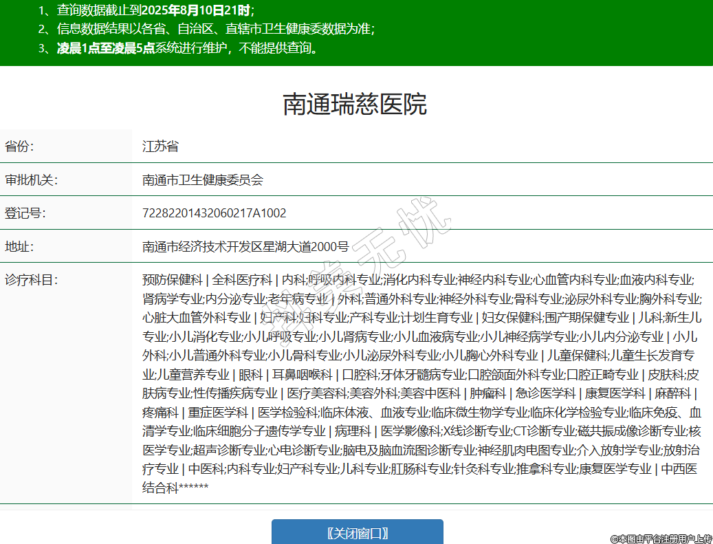省份:江蘇省審批機(jī)關(guān):南通市衛(wèi)生健康委員會(huì)登記號(hào):72282201432060217A1002地址:南通市經(jīng)濟(jì)技術(shù)開發(fā)區(qū)星湖大道2000號(hào)診療科目:預(yù)防保健科 | 全科醫(yī)療科 | 內(nèi)科;呼吸內(nèi)科專業(yè);消化內(nèi)科專業(yè);神經(jīng)內(nèi)科專業(yè);心血管內(nèi)科專業(yè);血液內(nèi)科專業(yè);腎病學(xué)專業(yè);內(nèi)分泌專業(yè);老年病專業(yè) | 外科;普通外科專業(yè);神經(jīng)外科專業(yè);骨科專業(yè);泌尿外科專業(yè);胸外科專業(yè);心臟大血管外科專業(yè) | 婦產(chǎn)科;婦科專業(yè);產(chǎn)科專業(yè);計(jì)劃生育專業(yè) | 婦女保健科;圍產(chǎn)期保健專業(yè) | 兒科;新生兒專業(yè);小兒消化專業(yè);小兒呼吸專業(yè);小兒腎病專業(yè);小兒血液病專業(yè);小兒神經(jīng)病學(xué)專業(yè);小兒內(nèi)分泌專業(yè) | 小兒外科;小兒普通外科專業(yè);小兒骨科專業(yè);小兒泌尿外科專業(yè);小兒胸心外科專業(yè) | 兒童保健科;兒童生長(zhǎng)發(fā)育專業(yè);兒童營(yíng)養(yǎng)專業(yè) | 眼科 | 耳鼻咽喉科 | 口腔科;牙體牙髓病專業(yè);口腔頜面外科專業(yè);口腔正畸專業(yè) | 皮膚科;皮膚病專業(yè);性傳播疾病專業(yè) | 醫(yī)療美容科;美容外科;美容中醫(yī)科 | 腫瘤科 | 急診醫(yī)學(xué)科 | 康復(fù)醫(yī)學(xué)科 | 麻醉科 | 疼痛科 | 重癥醫(yī)學(xué)科 | 醫(yī)學(xué)檢驗(yàn)科;臨床體液、血液專業(yè);臨床微生物學(xué)專業(yè);臨床化學(xué)檢驗(yàn)專業(yè);臨床免疫、血清學(xué)專業(yè);臨床細(xì)胞分子遺傳學(xué)專業(yè) | 病理科 | 醫(yī)學(xué)影像科;X線診斷專業(yè);CT診斷專業(yè);磁共振成像診斷專業(yè);核醫(yī)學(xué)專業(yè);超聲診斷專業(yè);心電診斷專業(yè);腦電及腦血流圖診斷專業(yè);神經(jīng)肌肉電圖專業(yè);介入放射學(xué)專業(yè);放射治療專業(yè) | 中醫(yī)科;內(nèi)科專業(yè);婦產(chǎn)科專業(yè);兒科專業(yè);肛腸科專業(yè);針灸科專業(yè);推拿科專業(yè);康復(fù)醫(yī)學(xué)專業(yè) | 中西醫(yī)結(jié)合科******級(jí)別:三級(jí)法定代表人:梅紅主要負(fù)責(zé)人:徐孝華執(zhí)業(yè)許可證有效期:2023/09/27 -至- 2036/05/30 -