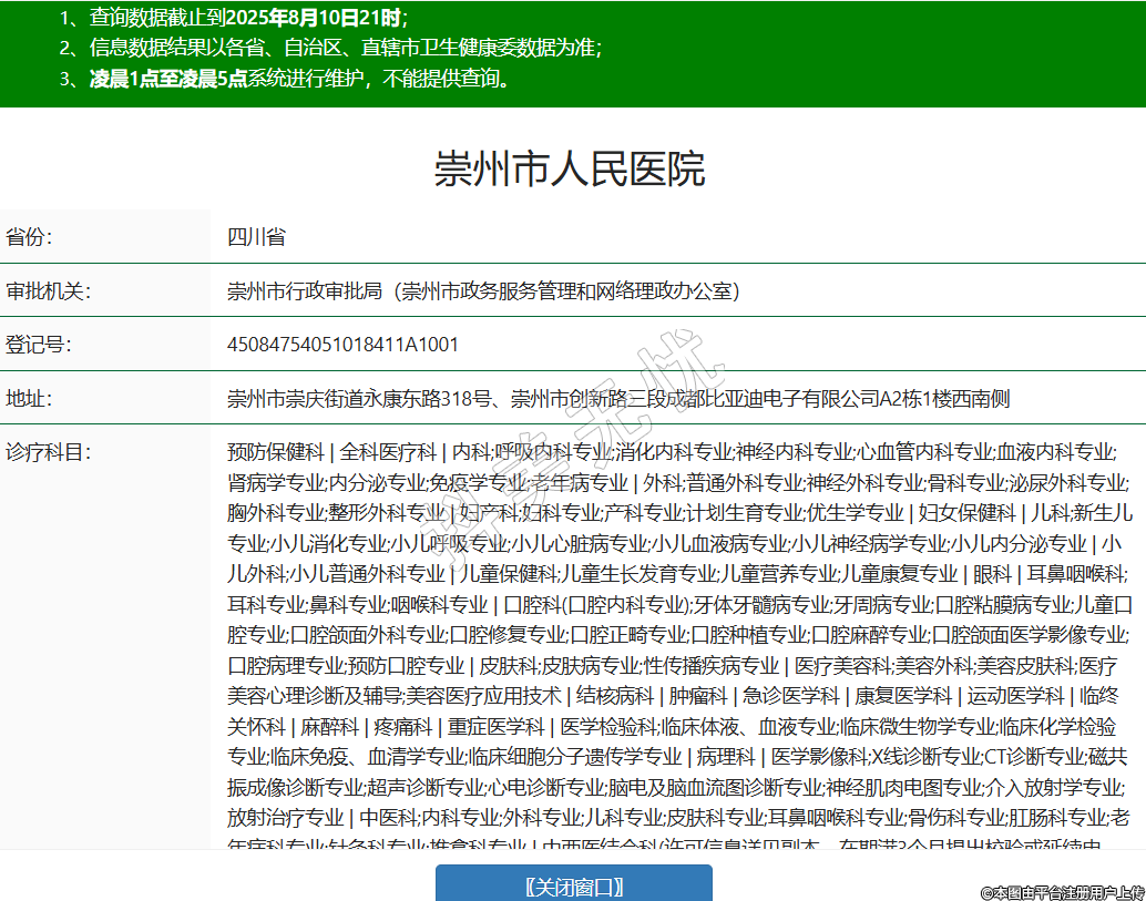 省份:四川省審批機(jī)關(guān):崇州市行政審批局(崇州市政務(wù)服務(wù)管理和網(wǎng)絡(luò)理政辦公室)登記號(hào):45084754051018411A1001地址:崇州市崇慶街道永康東路318號(hào)、崇州市創(chuàng)新路三段成都比亞迪電子有限公司A2棟1樓西南側(cè)診療科目:預(yù)防保健科 | 全科醫(yī)療科 | 內(nèi)科;呼吸內(nèi)科專業(yè);消化內(nèi)科專業(yè);神經(jīng)內(nèi)科專業(yè);心血管內(nèi)科專業(yè);血液內(nèi)科專業(yè);腎病學(xué)專業(yè);內(nèi)分泌專業(yè);免疫學(xué)專業(yè);老年病專業(yè) | 外科;普通外科專業(yè);神經(jīng)外科專業(yè);骨科專業(yè);泌尿外科專業(yè);胸外科專業(yè);整形外科專業(yè) | 婦產(chǎn)科;婦科專業(yè);產(chǎn)科專業(yè);計(jì)劃生育專業(yè);優(yōu)生學(xué)專業(yè) | 婦女保健科 | 兒科;新生兒專業(yè);小兒消化專業(yè);小兒呼吸專業(yè);小兒心臟病專業(yè);小兒血液病專業(yè);小兒神經(jīng)病學(xué)專業(yè);小兒內(nèi)分泌專業(yè) | 小兒外科;小兒普通外科專業(yè) | 兒童保健科;兒童生長(zhǎng)發(fā)育專業(yè);兒童營(yíng)養(yǎng)專業(yè);兒童康復(fù)專業(yè) | 眼科 | 耳鼻咽喉科;耳科專業(yè);鼻科專業(yè);咽喉科專業(yè) | 口腔科(口腔內(nèi)科專業(yè));牙體牙髓病專業(yè);牙周病專業(yè);口腔粘膜病專業(yè);兒童口腔專業(yè);口腔頜面外科專業(yè);口腔修復(fù)專業(yè);口腔正畸專業(yè);口腔種植專業(yè);口腔麻醉專業(yè);口腔頜面醫(yī)學(xué)影像專業(yè);口腔病理專業(yè);預(yù)防口腔專業(yè) | 皮膚科;皮膚病專業(yè);性傳播疾病專業(yè) | 醫(yī)療美容科;美容外科;美容皮膚科;醫(yī)療美容心理診斷及輔導(dǎo);美容醫(yī)療應(yīng)用技術(shù) | 結(jié)核病科 | 腫瘤科 | 急診醫(yī)學(xué)科 | 康復(fù)醫(yī)學(xué)科 | 運(yùn)動(dòng)醫(yī)學(xué)科 | 臨終關(guān)懷科 | 麻醉科 | 疼痛科 | 重癥醫(yī)學(xué)科 | 醫(yī)學(xué)檢驗(yàn)科;臨床體液、血液專業(yè);臨床微生物學(xué)專業(yè);臨床化學(xué)檢驗(yàn)專業(yè);臨床免疫、血清學(xué)專業(yè);臨床細(xì)胞分子遺傳學(xué)專業(yè) | 病理科 | 醫(yī)學(xué)影像科;X線診斷專業(yè);CT診斷專業(yè);磁共振成像診斷專業(yè);超聲診斷專業(yè);心電診斷專業(yè);腦電及腦血流圖診斷專業(yè);神經(jīng)肌肉電圖專業(yè);介入放射學(xué)專業(yè);放射治療專業(yè) | 中醫(yī)科;內(nèi)科專業(yè);外科專業(yè);兒科專業(yè);皮膚科專業(yè);耳鼻咽喉科專業(yè);骨傷科專業(yè);肛腸科專業(yè);老年病科專業(yè);針灸科專業(yè);推拿科專業(yè) | 中西醫(yī)結(jié)合科(許可信息詳見副本,在期滿3個(gè)月提出校驗(yàn)或延續(xù)申請(qǐng))******級(jí)別:三級(jí)法定代表人:游紅勇主要負(fù)責(zé)人:執(zhí)業(yè)許可證有效期:2021/07/14 -至- 2025/09/19 -