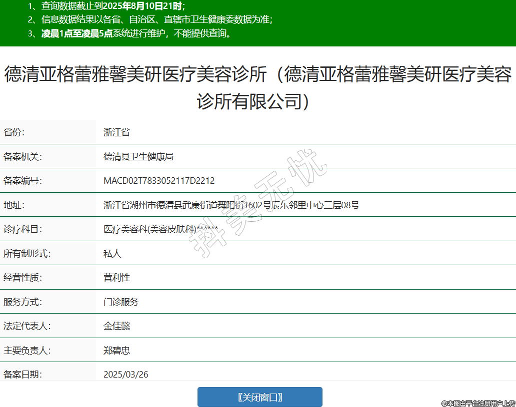 德清亞格蕾雅馨美研醫(yī)療美容診所(德清亞格蕾雅馨美研醫(yī)療美容診所有限公司)