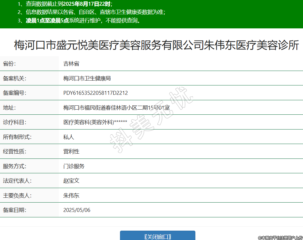 梅河口市盛元悅美醫(yī)療美容服務(wù)有限公司朱偉東醫(yī)療美容診所