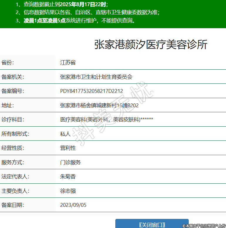 省份:江蘇省備案機關:張家港市衛(wèi)生和計劃生育委員會備案編號:PDY84177532058217D2212地址:張家港市楊舍鎮(zhèn)城建新村16幢B202診療科目:醫(yī)療美容科(美容外科,美容皮膚科)******所有制形式:私人經營性質:營利性服務方式:門診服務法定代表人:朱菊香主要負責人:徐志強備案日期:2023/09/05 -
