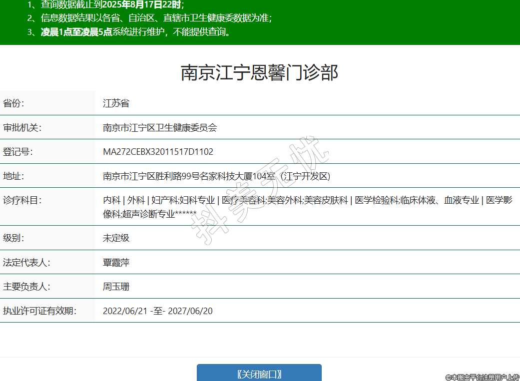 南京江寧恩馨門診部醫(yī)療美容