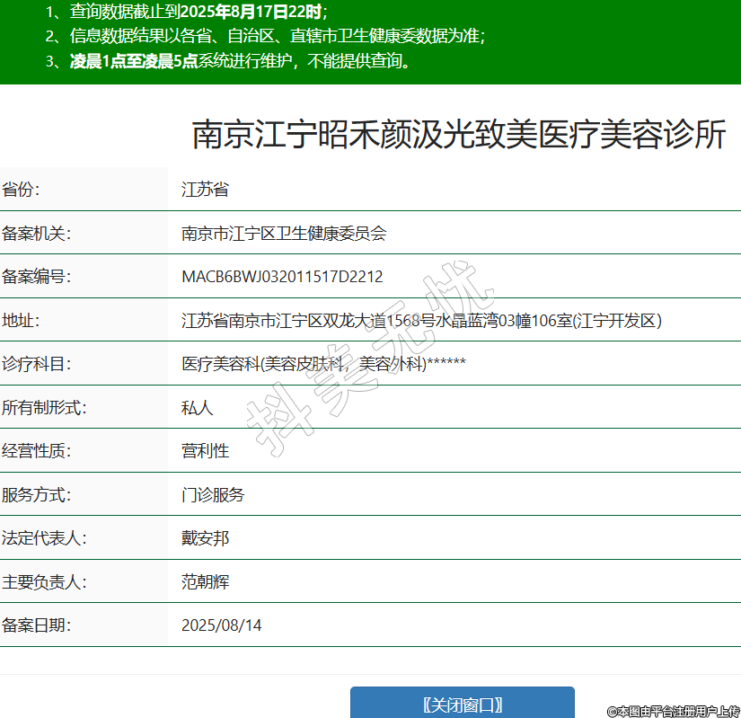 南京江寧昭禾顏汲光致美醫(yī)療美容診所,診療科目:醫(yī)療美容科(美容皮膚科,美容外科)******