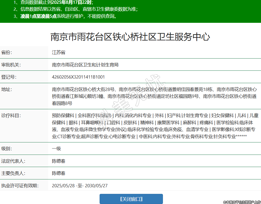 省份:江蘇省審批機關(guān):南京市雨花臺區(qū)衛(wèi)生和計劃生育局登記號:42602056X32011411B1001地址:南京市雨花臺區(qū)鐵心橋大街28號、南京市雨花臺區(qū)鐵心橋街道景明佳園春景苑18棟、南京市雨花臺區(qū)鐵心橋街道春江新城沁順坊3幢、南京市雨花臺區(qū)鐵心橋街道定坊社區(qū)福園路9號、南京市雨花臺區(qū)鐵心橋街道春園路8號診療科目:預(yù)防保健科 | 全科醫(yī)療科(培訓(xùn)) | 內(nèi)科;消化內(nèi)科專業(yè) | 外科 | 婦產(chǎn)科;計劃生育專業(yè) | 婦女保健科 | 兒科 | 兒童保健科 | 眼科 | 耳鼻咽喉科 | 口腔科 | 皮膚科 | 精神科 | 康復(fù)醫(yī)學(xué)科 | 麻醉科 | 疼痛科 | 醫(yī)學(xué)檢驗科;臨床體液、血液專業(yè);臨床微生物學(xué)專業(yè)(協(xié)議);臨床化學(xué)檢驗專業(yè);臨床免疫、血清學(xué)專業(yè) | 醫(yī)學(xué)影像科;X線診斷專業(yè);CT診斷專業(yè);超聲診斷專業(yè);心電診斷專業(yè) | 中醫(yī)科;內(nèi)科專業(yè);外科專業(yè);骨傷科專業(yè);針灸科專業(yè)******級別:一級法定代表人:陳德春主要負(fù)責(zé)人:陳德春執(zhí)業(yè)許可證有效期:2025/05/28 -至- 2030/05/27 -