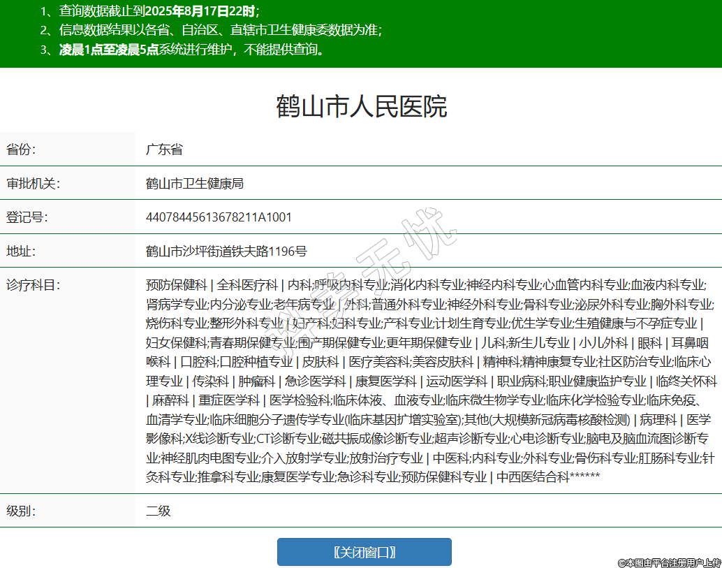 省份:廣東省審批機(jī)關(guān):鶴山市衛(wèi)生健康局登記號(hào):44078445613678211A1001地址:鶴山市沙坪街道鐵夫路1196號(hào)診療科目:預(yù)防保健科 | 全科醫(yī)療科 | 內(nèi)科;呼吸內(nèi)科專業(yè);消化內(nèi)科專業(yè);神經(jīng)內(nèi)科專業(yè);心血管內(nèi)科專業(yè);血液內(nèi)科專業(yè);腎病學(xué)專業(yè);內(nèi)分泌專業(yè);老年病專業(yè) | 外科;普通外科專業(yè);神經(jīng)外科專業(yè);骨科專業(yè);泌尿外科專業(yè);胸外科專業(yè);燒傷科專業(yè);整形外科專業(yè) | 婦產(chǎn)科;婦科專業(yè);產(chǎn)科專業(yè);計(jì)劃生育專業(yè);優(yōu)生學(xué)專業(yè);生殖健康與不孕癥專業(yè) | 婦女保健科;青春期保健專業(yè);圍產(chǎn)期保健專業(yè);更年期保健專業(yè) | 兒科;新生兒專業(yè) | 小兒外科 | 眼科 | 耳鼻咽喉科 | 口腔科;口腔種植專業(yè) | 皮膚科 | 醫(yī)療美容科;美容皮膚科 | 精神科;精神康復(fù)專業(yè);社區(qū)防治專業(yè);臨床心理專業(yè) | 傳染科 | 腫瘤科 | 急診醫(yī)學(xué)科 | 康復(fù)醫(yī)學(xué)科 | 運(yùn)動(dòng)醫(yī)學(xué)科 | 職業(yè)病科;職業(yè)健康監(jiān)護(hù)專業(yè) | 臨終關(guān)懷科 | 麻醉科 | 重癥醫(yī)學(xué)科 | 醫(yī)學(xué)檢驗(yàn)科;臨床體液、血液專業(yè);臨床微生物學(xué)專業(yè);臨床化學(xué)檢驗(yàn)專業(yè);臨床免疫、血清學(xué)專業(yè);臨床細(xì)胞分子遺傳學(xué)專業(yè)(臨床基因擴(kuò)增實(shí)驗(yàn)室);其他(大規(guī)模新冠病毒核酸檢測(cè)) | 病理科 | 醫(yī)學(xué)影像科;X線診斷專業(yè);CT診斷專業(yè);磁共振成像診斷專業(yè);超聲診斷專業(yè);心電診斷專業(yè);腦電及腦血流圖診斷專業(yè);神經(jīng)肌肉電圖專業(yè);介入放射學(xué)專業(yè);放射治療專業(yè) | 中醫(yī)科;內(nèi)科專業(yè);外科專業(yè);骨傷科專業(yè);肛腸科專業(yè);針灸科專業(yè);推拿科專業(yè);康復(fù)醫(yī)學(xué)專業(yè);急診科專業(yè);預(yù)防保健科專業(yè) | 中西醫(yī)結(jié)合科******級(jí)別:二級(jí)法定代表人:黃杰文主要負(fù)責(zé)人:黃杰文執(zhí)業(yè)許可證有效期:2022/12/21 -至- 2027/12/20 -