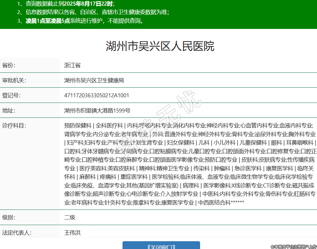 省份:浙江省審批機關(guān):湖州市吳興區(qū)衛(wèi)生健康局登記號:47117203633050212A1001地址:湖州市織里鎮(zhèn)大港路1599號診療科目:預(yù)防保健科 | 全科醫(yī)療科 | 內(nèi)科;呼吸內(nèi)科專業(yè);消化內(nèi)科專業(yè);神經(jīng)內(nèi)科專業(yè);心血管內(nèi)科專業(yè);血液內(nèi)科專業(yè);腎病學(xué)專業(yè);內(nèi)分泌專業(yè);老年病專業(yè) | 外科;普通外科專業(yè);神經(jīng)外科專業(yè);骨科專業(yè);泌尿外科專業(yè);胸外科專業(yè) | 婦產(chǎn)科;婦科專業(yè);產(chǎn)科專業(yè);計劃生育專業(yè) | 婦女保健科 | 兒科 | 小兒外科 | 兒童保健科 | 眼科 | 耳鼻咽喉科 | 口腔科;牙體牙髓病專業(yè);牙周病專業(yè);口腔粘膜病專業(yè);兒童口腔專業(yè);口腔頜面外科專業(yè);口腔修復(fù)專業(yè);口腔正畸專業(yè);口腔種植專業(yè);口腔麻醉專業(yè);口腔頜面醫(yī)學(xué)影像專業(yè);預(yù)防口腔專業(yè) | 皮膚科;皮膚病專業(yè);性傳播疾病專業(yè) | 醫(yī)療美容科;美容皮膚科 | 精神科;精神衛(wèi)生專業(yè) | 傳染科 | 腫瘤科 | 急診醫(yī)學(xué)科 | 康復(fù)醫(yī)學(xué)科 | 臨終關(guān)懷科 | 麻醉科 | 疼痛科 | 重癥醫(yī)學(xué)科 | 醫(yī)學(xué)檢驗科;臨床體液、血液專業(yè);臨床微生物學(xué)專業(yè);臨床化學(xué)檢驗專業(yè);臨床免疫、血清學(xué)專業(yè);其他(基因擴增實驗室) | 病理科 | 醫(yī)學(xué)影像科;X線診斷專業(yè);CT診斷專業(yè);磁共振成像診斷專業(yè);超聲診斷專業(yè);心電診斷專業(yè);介入放射學(xué)專業(yè) | 中醫(yī)科;內(nèi)科專業(yè);外科專業(yè);骨傷科專業(yè);肛腸科專業(yè);老年病科專業(yè);針灸科專業(yè);推拿科專業(yè);康復(fù)醫(yī)學(xué)專業(yè) | 中西醫(yī)結(jié)合科******級別:二級法定代表人:王偉洪主要負責(zé)人:武中慶執(zhí)業(yè)許可證有效期:2021/07/13 -至- 2026/07/12 -