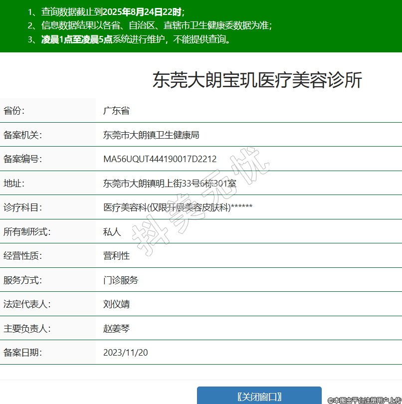 省份:廣東省備案機關(guān):東莞市大朗鎮(zhèn)衛(wèi)生健康局備案編號:MA56UQUT444190017D2212地址:東莞市大朗鎮(zhèn)明上街33號6棟301室診療科目:醫(yī)療美容科(僅限開展美容皮膚科)******所有制形式:私人經(jīng)營性質(zhì):營利性服務(wù)方式:門診服務(wù)法定代表人:劉儀靖主要負(fù)責(zé)人:趙姜琴備案日期:2023/11/20 -