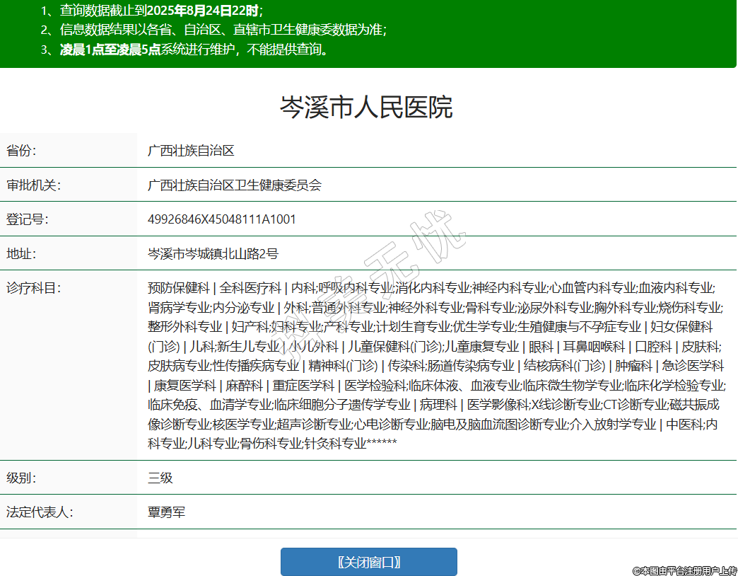 省份:廣西壯族自治區(qū)審批機關(guān):廣西壯族自治區(qū)衛(wèi)生健康委員會登記號:49926846X45048111A1001地址:岑溪市岑城鎮(zhèn)北山路2號診療科目:預(yù)防保健科 | 全科醫(yī)療科 | 內(nèi)科;呼吸內(nèi)科專業(yè);消化內(nèi)科專業(yè);神經(jīng)內(nèi)科專業(yè);心血管內(nèi)科專業(yè);血液內(nèi)科專業(yè);腎病學(xué)專業(yè);內(nèi)分泌專業(yè) | 外科;普通外科專業(yè);神經(jīng)外科專業(yè);骨科專業(yè);泌尿外科專業(yè);胸外科專業(yè);燒傷科專業(yè);整形外科專業(yè) | 婦產(chǎn)科;婦科專業(yè);產(chǎn)科專業(yè);計劃生育專業(yè);優(yōu)生學(xué)專業(yè);生殖健康與不孕癥專業(yè) | 婦女保健科(門診) | 兒科;新生兒專業(yè) | 小兒外科 | 兒童保健科(門診);兒童康復(fù)專業(yè) | 眼科 | 耳鼻咽喉科 | 口腔科 | 皮膚科;皮膚病專業(yè);性傳播疾病專業(yè) | 精神科(門診) | 傳染科;腸道傳染病專業(yè) | 結(jié)核病科(門診) | 腫瘤科 | 急診醫(yī)學(xué)科 | 康復(fù)醫(yī)學(xué)科 | 麻醉科 | 重癥醫(yī)學(xué)科 | 醫(yī)學(xué)檢驗科;臨床體液、血液專業(yè);臨床微生物學(xué)專業(yè);臨床化學(xué)檢驗專業(yè);臨床免疫、血清學(xué)專業(yè);臨床細胞分子遺傳學(xué)專業(yè) | 病理科 | 醫(yī)學(xué)影像科;X線診斷專業(yè);CT診斷專業(yè);磁共振成像診斷專業(yè);核醫(yī)學(xué)專業(yè);超聲診斷專業(yè);心電診斷專業(yè);腦電及腦血流圖診斷專業(yè);介入放射學(xué)專業(yè) | 中醫(yī)科;內(nèi)科專業(yè);兒科專業(yè);骨傷科專業(yè);針灸科專業(yè)******級別:三級法定代表人:覃勇軍主要負責(zé)人:覃勇軍執(zhí)業(yè)許可證有效期:2020/10/27 -至- 2035/10/26 -