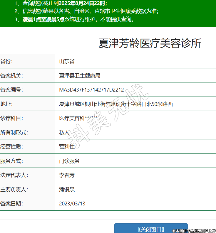 省份:山東省備案機(jī)關(guān):夏津縣衛(wèi)生健康局備案編號(hào):MA3D437F137142717D2212地址:夏津縣城區(qū)銀山北街與建設(shè)街十字路口北50米路西診療科目:醫(yī)療美容科******所有制形式:私人經(jīng)營(yíng)性質(zhì):營(yíng)利性服務(wù)方式:門診服務(wù)法定代表人:李春芳主要負(fù)責(zé)人:潘銀泉備案日期:2023/03/13 -