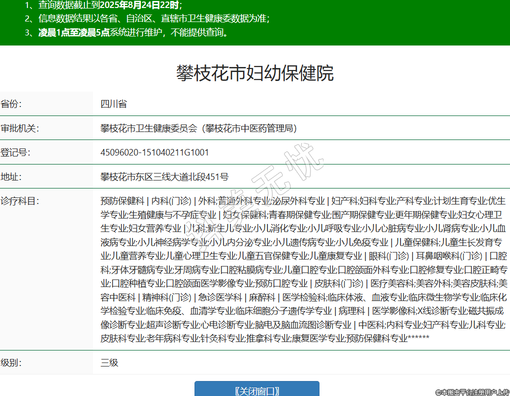 攀枝花市婦幼保健院醫(yī)療美容