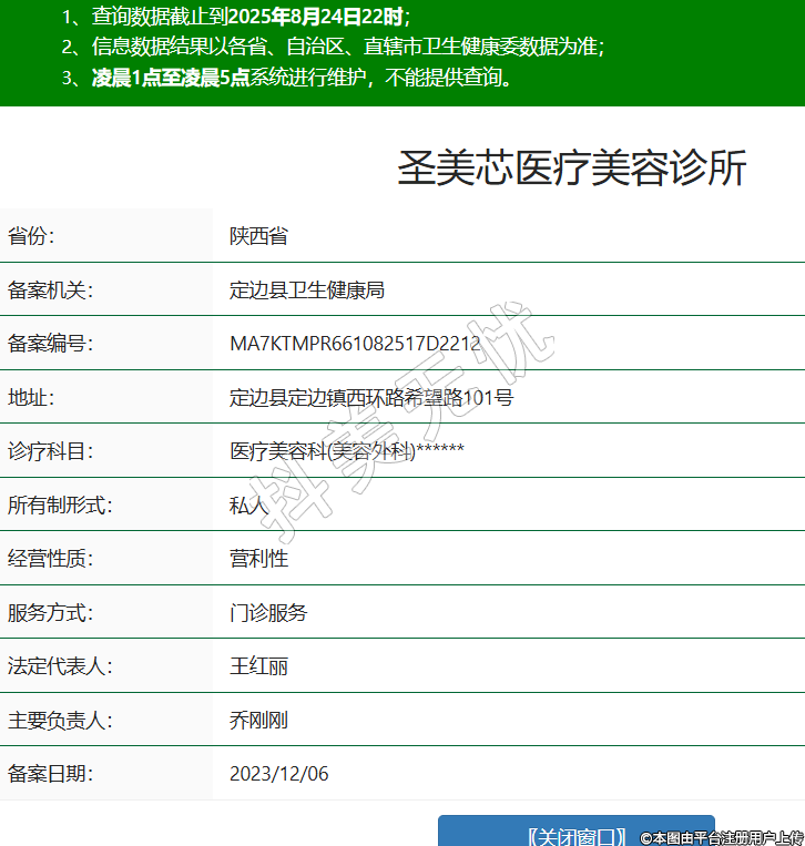 省份:陜西省備案機(jī)關(guān):定邊縣衛(wèi)生健康局備案編號:MA7KTMPR661082517D2212地址:定邊縣定邊鎮(zhèn)西環(huán)路希望路101號診療科目:醫(yī)療美容科(美容外科)******所有制形式:私人經(jīng)營性質(zhì):營利性服務(wù)方式:門診服務(wù)法定代表人:王紅麗主要負(fù)責(zé)人:喬剛剛備案日期:2023/12/06 -