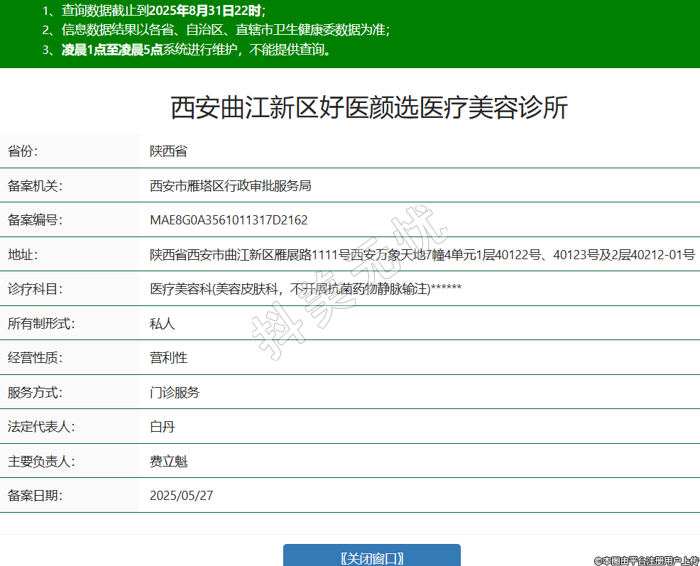 西安曲江新區(qū)好醫(yī)顏選醫(yī)療美容診所,診療科目:醫(yī)療美容科(美容皮膚科,不開展抗菌藥物靜脈輸注)******