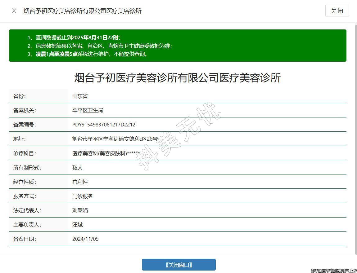 煙臺予初醫(yī)療美容診所有限公司醫(yī)療美容診所