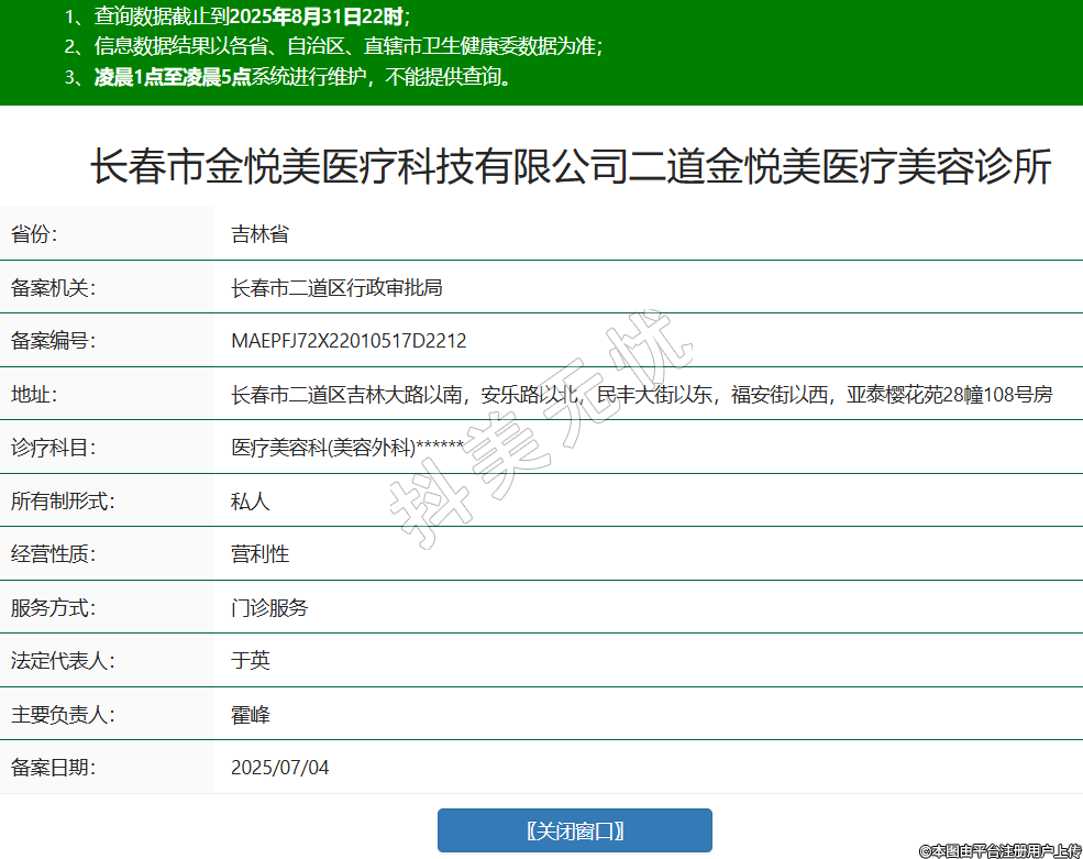 長(zhǎng)春市金悅美醫(yī)療科技有限公司二道金悅美醫(yī)療美容診所