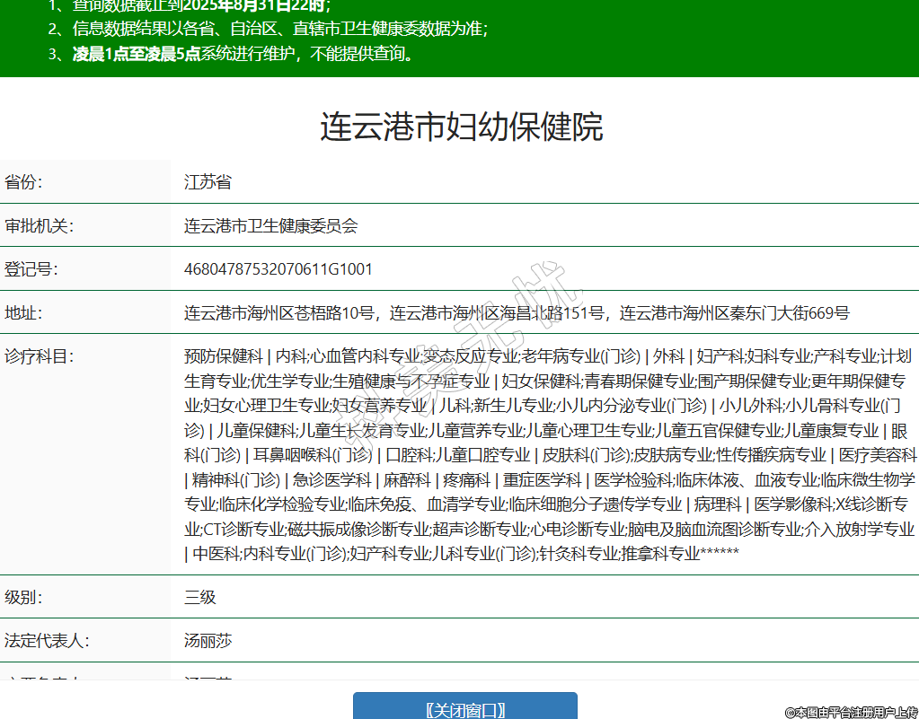 省份:江蘇省審批機(jī)關(guān):連云港市衛(wèi)生健康委員會(huì)登記號(hào):46804787532070611G1001地址:連云港市海州區(qū)蒼梧路10號(hào),連云港市海州區(qū)海昌北路151號(hào),連云港市海州區(qū)秦東門大街669號(hào)診療科目:預(yù)防保健科 | 內(nèi)科;心血管內(nèi)科專業(yè);變態(tài)反應(yīng)專業(yè);老年病專業(yè)(門診) | 外科 | 婦產(chǎn)科;婦科專業(yè);產(chǎn)科專業(yè);計(jì)劃生育專業(yè);優(yōu)生學(xué)專業(yè);生殖健康與不孕癥專業(yè) | 婦女保健科;青春期保健專業(yè);圍產(chǎn)期保健專業(yè);更年期保健專業(yè);婦女心理衛(wèi)生專業(yè);婦女營(yíng)養(yǎng)專業(yè) | 兒科;新生兒專業(yè);小兒內(nèi)分泌專業(yè)(門診) | 小兒外科;小兒骨科專業(yè)(門診) | 兒童保健科;兒童生長(zhǎng)發(fā)育專業(yè);兒童營(yíng)養(yǎng)專業(yè);兒童心理衛(wèi)生專業(yè);兒童五官保健專業(yè);兒童康復(fù)專業(yè) | 眼科(門診) | 耳鼻咽喉科(門診) | 口腔科;兒童口腔專業(yè) | 皮膚科(門診);皮膚病專業(yè);性傳播疾病專業(yè) | 醫(yī)療美容科 | 精神科(門診) | 急診醫(yī)學(xué)科 | 麻醉科 | 疼痛科 | 重癥醫(yī)學(xué)科 | 醫(yī)學(xué)檢驗(yàn)科;臨床體液、血液專業(yè);臨床微生物學(xué)專業(yè);臨床化學(xué)檢驗(yàn)專業(yè);臨床免疫、血清學(xué)專業(yè);臨床細(xì)胞分子遺傳學(xué)專業(yè) | 病理科 | 醫(yī)學(xué)影像科;X線診斷專業(yè);CT診斷專業(yè);磁共振成像診斷專業(yè);超聲診斷專業(yè);心電診斷專業(yè);腦電及腦血流圖診斷專業(yè);介入放射學(xué)專業(yè) | 中醫(yī)科;內(nèi)科專業(yè)(門診);婦產(chǎn)科專業(yè);兒科專業(yè)(門診);針灸科專業(yè);推拿科專業(yè)******級(jí)別:三級(jí)法定代表人:湯麗莎主要負(fù)責(zé)人:湯麗莎執(zhí)業(yè)許可證有效期:2021/12/30 -至- 2036/12/30 -