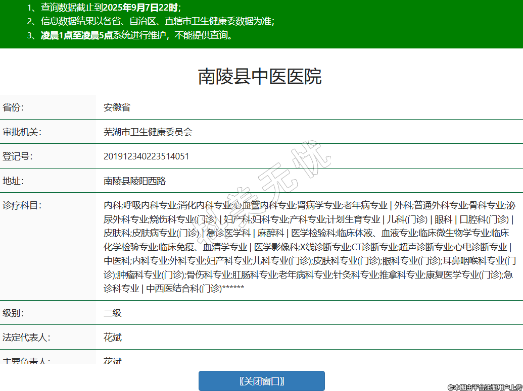 省份:安徽省審批機關(guān):蕪湖市衛(wèi)生健康委員會登記號:201912340223514051地址:南陵縣陵陽西路診療科目:內(nèi)科;呼吸內(nèi)科專業(yè);消化內(nèi)科專業(yè);心血管內(nèi)科專業(yè);腎病學(xué)專業(yè);老年病專業(yè) | 外科;普通外科專業(yè);骨科專業(yè);泌尿外科專業(yè);燒傷科專業(yè)(門診) | 婦產(chǎn)科;婦科專業(yè);產(chǎn)科專業(yè);計劃生育專業(yè) | 兒科(門診) | 眼科 | 口腔科(門診) | 皮膚科;皮膚病專業(yè)(門診) | 急診醫(yī)學(xué)科 | 麻醉科 | 醫(yī)學(xué)檢驗科;臨床體液、血液專業(yè);臨床微生物學(xué)專業(yè);臨床化學(xué)檢驗專業(yè);臨床免疫、血清學(xué)專業(yè) | 醫(yī)學(xué)影像科;X線診斷專業(yè);CT診斷專業(yè);超聲診斷專業(yè);心電診斷專業(yè) | 中醫(yī)科;內(nèi)科專業(yè);外科專業(yè);婦產(chǎn)科專業(yè);兒科專業(yè)(門診);皮膚科專業(yè)(門診);眼科專業(yè)(門診);耳鼻咽喉科專業(yè)(門診);腫瘤科專業(yè)(門診);骨傷科專業(yè);肛腸科專業(yè);老年病科專業(yè);針灸科專業(yè);推拿科專業(yè);康復(fù)醫(yī)學(xué)專業(yè)(門診);急診科專業(yè) | 中西醫(yī)結(jié)合科(門診)******級別:二級法定代表人:花斌主要負(fù)責(zé)人:花斌執(zhí)業(yè)許可證有效期:2024/04/24 -至- 2038/08/24 -