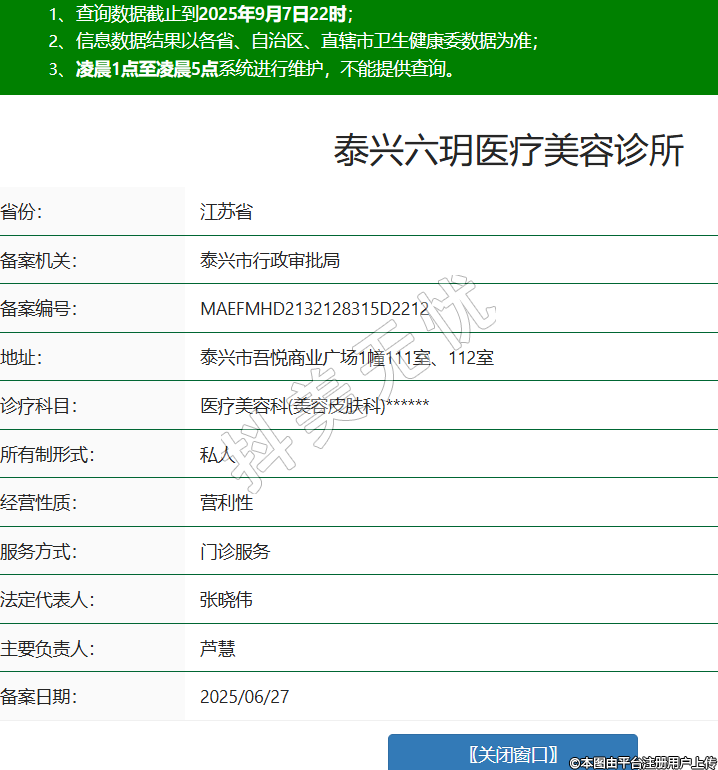 省份:江蘇省備案機(jī)關(guān):泰興市行政審批局備案編號(hào):MAEFMHD2132128315D2212地址:泰興市吾悅商業(yè)廣場(chǎng)1幢111室、112室診療科目:醫(yī)療美容科(美容皮膚科)******所有制形式:私人經(jīng)營(yíng)性質(zhì):營(yíng)利性服務(wù)方式:門診服務(wù)法定代表人:張曉偉主要負(fù)責(zé)人:蘆慧備案日期:2025/06/27 -