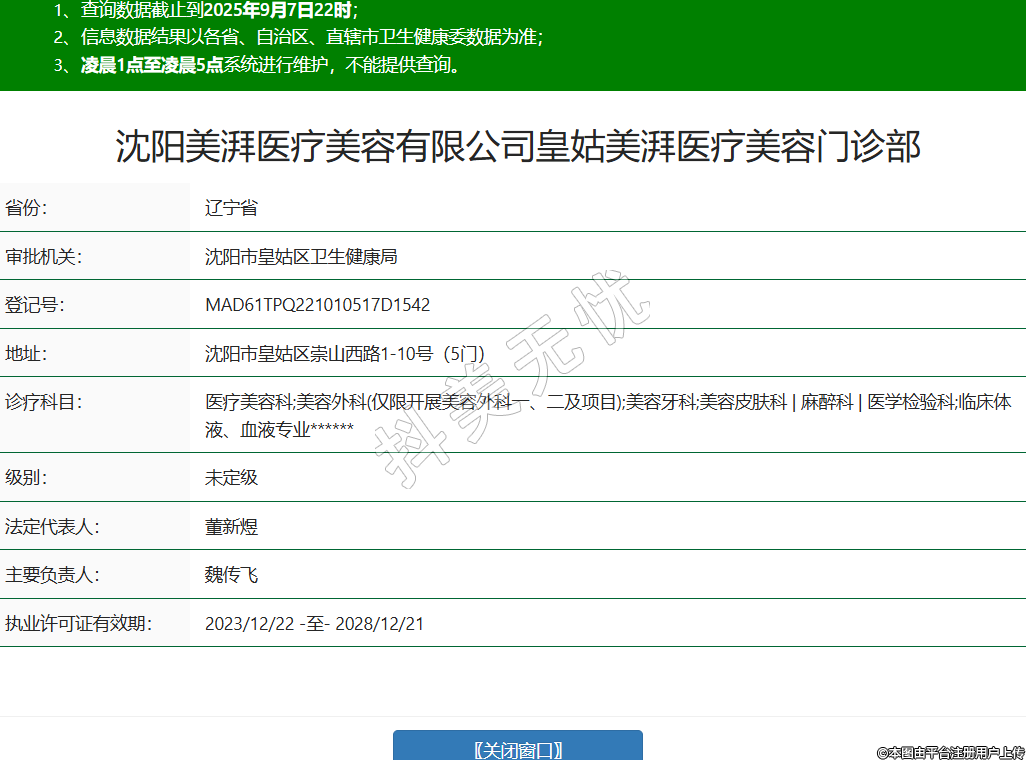 沈陽(yáng)美湃醫(yī)療美容有限公司皇姑美湃醫(yī)療美容門診部