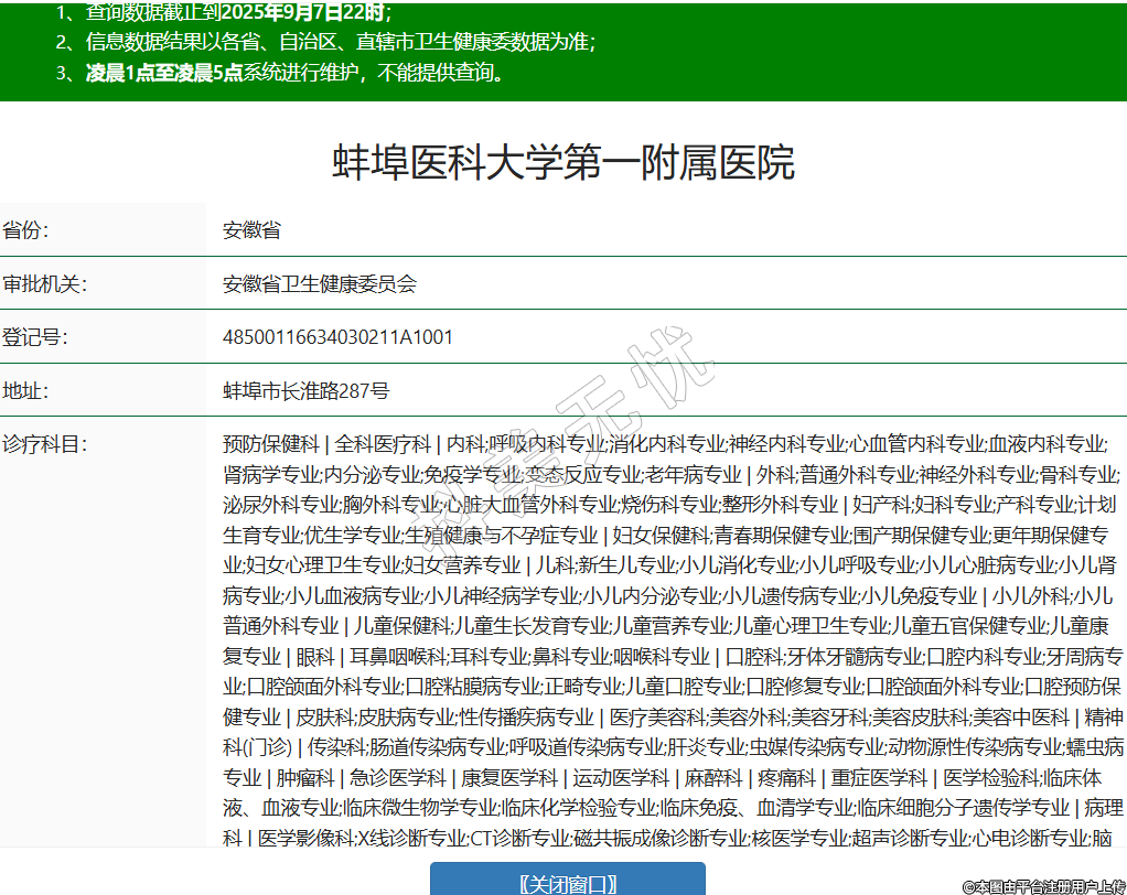 省份:安徽省審批機(jī)關(guān):安徽省衛(wèi)生健康委員會登記號:48500116634030211A1001地址:蚌埠市長淮路287號診療科目:預(yù)防保健科 | 全科醫(yī)療科 | 內(nèi)科;呼吸內(nèi)科專業(yè);消化內(nèi)科專業(yè);神經(jīng)內(nèi)科專業(yè);心血管內(nèi)科專業(yè);血液內(nèi)科專業(yè);腎病學(xué)專業(yè);內(nèi)分泌專業(yè);免疫學(xué)專業(yè);變態(tài)反應(yīng)專業(yè);老年病專業(yè) | 外科;普通外科專業(yè);神經(jīng)外科專業(yè);骨科專業(yè);泌尿外科專業(yè);胸外科專業(yè);心臟大血管外科專業(yè);燒傷科專業(yè);整形外科專業(yè) | 婦產(chǎn)科;婦科專業(yè);產(chǎn)科專業(yè);計劃生育專業(yè);優(yōu)生學(xué)專業(yè);生殖健康與不孕癥專業(yè) | 婦女保健科;青春期保健專業(yè);圍產(chǎn)期保健專業(yè);更年期保健專業(yè);婦女心理衛(wèi)生專業(yè);婦女營養(yǎng)專業(yè) | 兒科;新生兒專業(yè);小兒消化專業(yè);小兒呼吸專業(yè);小兒心臟病專業(yè);小兒腎病專業(yè);小兒血液病專業(yè);小兒神經(jīng)病學(xué)專業(yè);小兒內(nèi)分泌專業(yè);小兒遺傳病專業(yè);小兒免疫專業(yè) | 小兒外科;小兒普通外科專業(yè) | 兒童保健科;兒童生長發(fā)育專業(yè);兒童營養(yǎng)專業(yè);兒童心理衛(wèi)生專業(yè);兒童五官保健專業(yè);兒童康復(fù)專業(yè) | 眼科 | 耳鼻咽喉科;耳科專業(yè);鼻科專業(yè);咽喉科專業(yè) | 口腔科;牙體牙髓病專業(yè);口腔內(nèi)科專業(yè);牙周病專業(yè);口腔頜面外科專業(yè);口腔粘膜病專業(yè);正畸專業(yè);兒童口腔專業(yè);口腔修復(fù)專業(yè);口腔頜面外科專業(yè);口腔預(yù)防保健專業(yè) | 皮膚科;皮膚病專業(yè);性傳播疾病專業(yè) | 醫(yī)療美容科;美容外科;美容牙科;美容皮膚科;美容中醫(yī)科 | 精神科(門診) | 傳染科;腸道傳染病專業(yè);呼吸道傳染病專業(yè);肝炎專業(yè);蟲媒傳染病專業(yè);動物源性傳染病專業(yè);蠕蟲病專業(yè) | 腫瘤科 | 急診醫(yī)學(xué)科 | 康復(fù)醫(yī)學(xué)科 | 運動醫(yī)學(xué)科 | 麻醉科 | 疼痛科 | 重癥醫(yī)學(xué)科 | 醫(yī)學(xué)檢驗科;臨床體液、血液專業(yè);臨床微生物學(xué)專業(yè);臨床化學(xué)檢驗專業(yè);臨床免疫、血清學(xué)專業(yè);臨床細(xì)胞分子遺傳學(xué)專業(yè) | 病理科 | 醫(yī)學(xué)影像科;X線診斷專業(yè);CT診斷專業(yè);磁共振成像診斷專業(yè);核醫(yī)學(xué)專業(yè);超聲診斷專業(yè);心電診斷專業(yè);腦電及腦血流圖診斷專業(yè);神經(jīng)肌肉電圖專業(yè);介入放射學(xué)專業(yè);放射治療專業(yè) | 中醫(yī)科 | 中西醫(yī)結(jié)合科******級別:三級法定代表人:胡建國主要負(fù)責(zé)人:胡建國執(zhí)業(yè)許可證有效期:2024/07/18 -至- 2027/02/04 -
