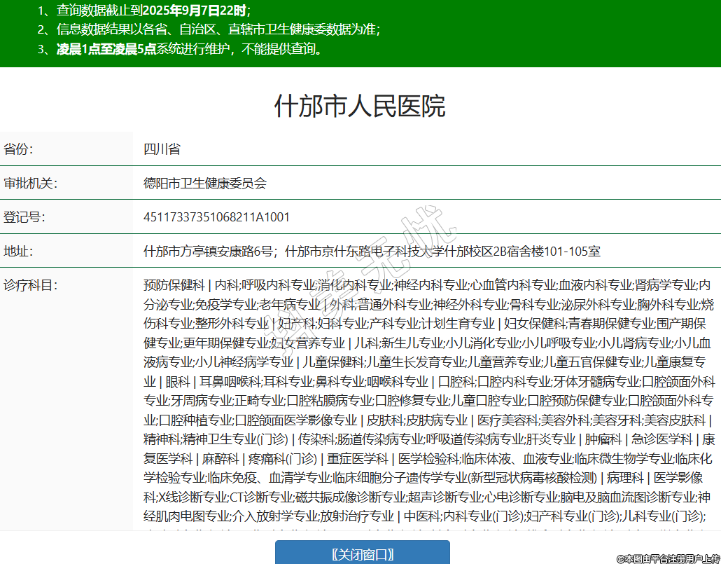 省份:四川省審批機關(guān):德陽市衛(wèi)生健康委員會登記號:45117337351068211A1001地址:什邡市方亭鎮(zhèn)安康路6號;什邡市京什東路電子科技大學什邡校區(qū)2B宿舍樓101-105室診療科目:預防保健科 | 內(nèi)科;呼吸內(nèi)科專業(yè);消化內(nèi)科專業(yè);神經(jīng)內(nèi)科專業(yè);心血管內(nèi)科專業(yè);血液內(nèi)科專業(yè);腎病學專業(yè);內(nèi)分泌專業(yè);免疫學專業(yè);老年病專業(yè) | 外科;普通外科專業(yè);神經(jīng)外科專業(yè);骨科專業(yè);泌尿外科專業(yè);胸外科專業(yè);燒傷科專業(yè);整形外科專業(yè) | 婦產(chǎn)科;婦科專業(yè);產(chǎn)科專業(yè);計劃生育專業(yè) | 婦女保健科;青春期保健專業(yè);圍產(chǎn)期保健專業(yè);更年期保健專業(yè);婦女營養(yǎng)專業(yè) | 兒科;新生兒專業(yè);小兒消化專業(yè);小兒呼吸專業(yè);小兒腎病專業(yè);小兒血液病專業(yè);小兒神經(jīng)病學專業(yè) | 兒童保健科;兒童生長發(fā)育專業(yè);兒童營養(yǎng)專業(yè);兒童五官保健專業(yè);兒童康復專業(yè) | 眼科 | 耳鼻咽喉科;耳科專業(yè);鼻科專業(yè);咽喉科專業(yè) | 口腔科;口腔內(nèi)科專業(yè);牙體牙髓病專業(yè);口腔頜面外科專業(yè);牙周病專業(yè);正畸專業(yè);口腔粘膜病專業(yè);口腔修復專業(yè);兒童口腔專業(yè);口腔預防保健專業(yè);口腔頜面外科專業(yè);口腔種植專業(yè);口腔頜面醫(yī)學影像專業(yè) | 皮膚科;皮膚病專業(yè) | 醫(yī)療美容科;美容外科;美容牙科;美容皮膚科 | 精神科;精神衛(wèi)生專業(yè)(門診) | 傳染科;腸道傳染病專業(yè);呼吸道傳染病專業(yè);肝炎專業(yè) | 腫瘤科 | 急診醫(yī)學科 | 康復醫(yī)學科 | 麻醉科 | 疼痛科(門診) | 重癥醫(yī)學科 | 醫(yī)學檢驗科;臨床體液、血液專業(yè);臨床微生物學專業(yè);臨床化學檢驗專業(yè);臨床免疫、血清學專業(yè);臨床細胞分子遺傳學專業(yè)(新型冠狀病毒核酸檢測) | 病理科 | 醫(yī)學影像科;X線診斷專業(yè);CT診斷專業(yè);磁共振成像診斷專業(yè);超聲診斷專業(yè);心電診斷專業(yè);腦電及腦血流圖診斷專業(yè);神經(jīng)肌肉電圖專業(yè);介入放射學專業(yè);放射治療專業(yè) | 中醫(yī)科;內(nèi)科專業(yè)(門診);婦產(chǎn)科專業(yè)(門診);兒科專業(yè)(門診);皮膚科專業(yè)(門診);骨傷科專業(yè)(門診);肛腸科專業(yè)(門診);針灸科專業(yè)(門診);推拿科專業(yè)(門診);康復醫(yī)學專業(yè)(門診) | 中西醫(yī)結(jié)合科******級別:三級法定代表人:劉強主要負責人:劉強執(zhí)業(yè)許可證有效期:2020/07/10 -至- 2035/07/09 -