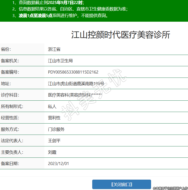 省份:浙江省備案機關(guān):江山市衛(wèi)生局備案編號:PDY00586533088115D2162地址:江山市虎山街道鹿溪南路198號診療科目:醫(yī)療美容科(美容皮膚科)******所有制形式:私人經(jīng)營性質(zhì):營利性服務(wù)方式:門診服務(wù)法定代表人:王劍平主要負責人:劉霞備案日期:2023/12/01 -