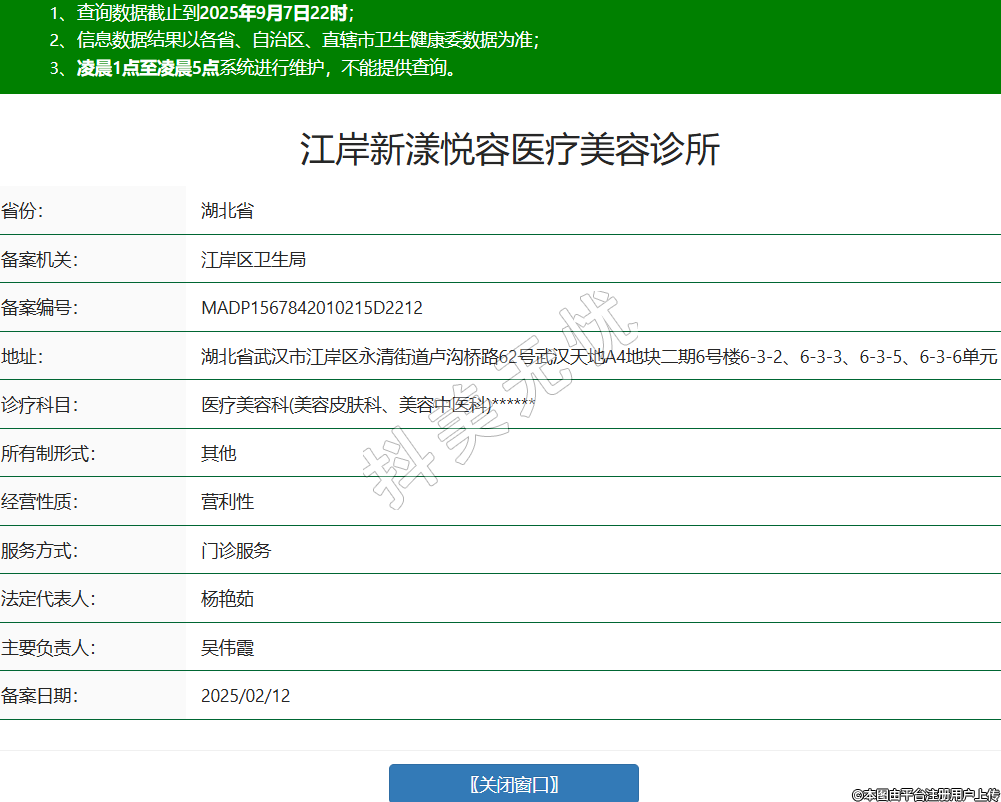 省份:湖北省備案機關(guān):江岸區(qū)衛(wèi)生局備案編號:MADP1567842010215D2212地址:湖北省武漢市江岸區(qū)永清街道盧溝橋路62號武漢天地A4地塊二期6號樓6-3-2、6-3-3、6-3-5、6-3-6單元診療科目:醫(yī)療美容科(美容皮膚科、美容中醫(yī)科)******所有制形式:其他經(jīng)營性質(zhì):營利性服務(wù)方式:門診服務(wù)法定代表人:楊艷茹主要負責人:吳偉霞備案日期:2025/02/12 -