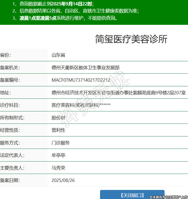 省份:山東省備案機關(guān):德州天衢新區(qū)教體衛(wèi)生事業(yè)發(fā)展部備案編號:MACF0TMU737140217D2212地址:德州市經(jīng)濟技術(shù)開發(fā)區(qū)宋官屯街道辦事處紫麟苑底商9號樓2層207室診療科目:醫(yī)療美容科(美容皮膚科)******所有制形式:股份制經(jīng)營性質(zhì):營利性服務(wù)方式:門診服務(wù)法定代表人:牟亭亭主要負(fù)責(zé)人:馬秀榮備案日期:2025/08/26 -