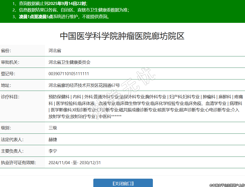 中國醫(yī)學(xué)科學(xué)院腫瘤醫(yī)院廊坊院區(qū)