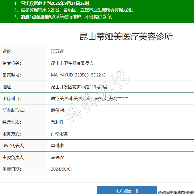省份:江蘇省備案機(jī)關(guān):昆山市衛(wèi)生健康委員會(huì)備案編號(hào):MA1Y4YUD132058315D2212地址:昆山開(kāi)發(fā)區(qū)前進(jìn)中路219號(hào)9層診療科目:醫(yī)療美容科(美容外科、美容皮膚科)******所有制形式:股份制經(jīng)營(yíng)性質(zhì):營(yíng)利性服務(wù)方式:門診服務(wù)法定代表人:單琳琳主要負(fù)責(zé)人:馬醫(yī)農(nóng)備案日期:2024/08/01 -