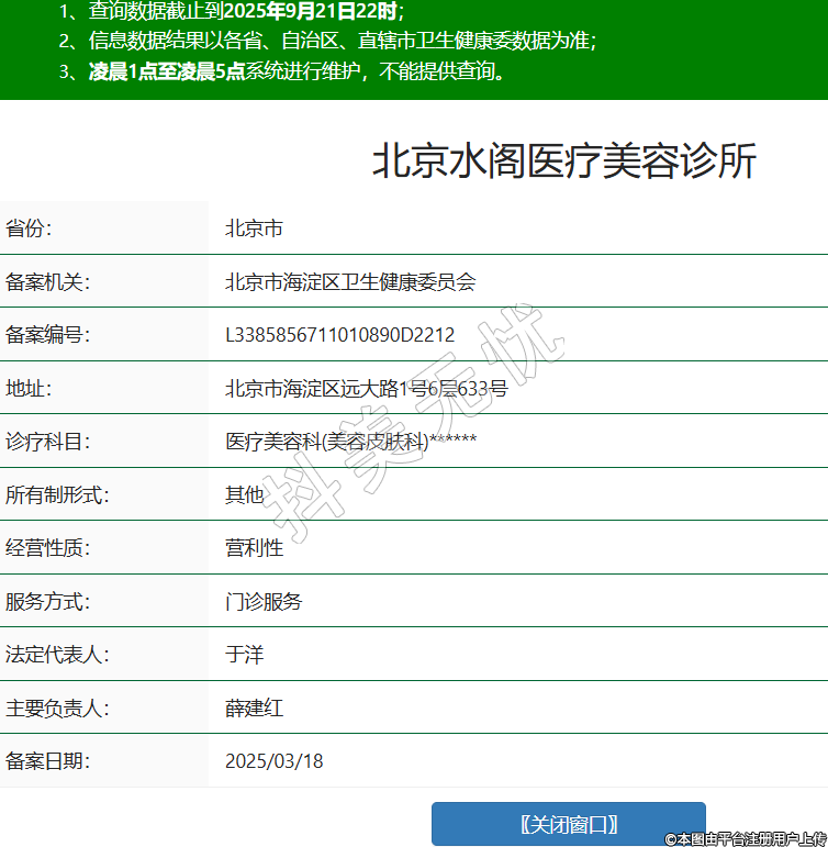 省份:北京市備案機(jī)關(guān):北京市海淀區(qū)衛(wèi)生健康委員會(huì)備案編號(hào):L3385856711010890D2212地址:北京市海淀區(qū)遠(yuǎn)大路1號(hào)6層633號(hào)診療科目:醫(yī)療美容科(美容皮膚科)******所有制形式:其他經(jīng)營性質(zhì):營利性服務(wù)方式:門診服務(wù)法定代表人:于洋主要負(fù)責(zé)人:薛建紅備案日期:2025/03/18 -