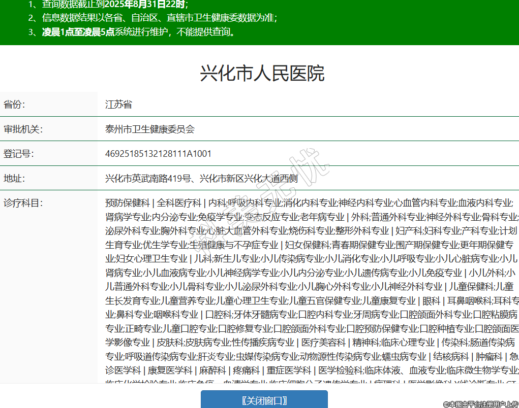 省份:江蘇省審批機(jī)關(guān):泰州市衛(wèi)生健康委員會(huì)登記號(hào):46925185132128111A1001地址:興化市英武南路419號(hào)、興化市新區(qū)興化大道西側(cè)診療科目:預(yù)防保健科 | 全科醫(yī)療科 | 內(nèi)科;呼吸內(nèi)科專業(yè);消化內(nèi)科專業(yè);神經(jīng)內(nèi)科專業(yè);心血管內(nèi)科專業(yè);血液內(nèi)科專業(yè);腎病學(xué)專業(yè);內(nèi)分泌專業(yè);免疫學(xué)專業(yè);變態(tài)反應(yīng)專業(yè);老年病專業(yè) | 外科;普通外科專業(yè);神經(jīng)外科專業(yè);骨科專業(yè);泌尿外科專業(yè);胸外科專業(yè);心臟大血管外科專業(yè);燒傷科專業(yè);整形外科專業(yè) | 婦產(chǎn)科;婦科專業(yè);產(chǎn)科專業(yè);計(jì)劃生育專業(yè);優(yōu)生學(xué)專業(yè);生殖健康與不孕癥專業(yè) | 婦女保健科;青春期保健專業(yè);圍產(chǎn)期保健專業(yè);更年期保健專業(yè);婦女心理衛(wèi)生專業(yè) | 兒科;新生兒專業(yè);小兒傳染病專業(yè);小兒消化專業(yè);小兒呼吸專業(yè);小兒心臟病專業(yè);小兒腎病專業(yè);小兒血液病專業(yè);小兒神經(jīng)病學(xué)專業(yè);小兒內(nèi)分泌專業(yè);小兒遺傳病專業(yè);小兒免疫專業(yè) | 小兒外科;小兒普通外科專業(yè);小兒骨科專業(yè);小兒泌尿外科專業(yè);小兒胸心外科專業(yè);小兒神經(jīng)外科專業(yè) | 兒童保健科;兒童生長(zhǎng)發(fā)育專業(yè);兒童營(yíng)養(yǎng)專業(yè);兒童心理衛(wèi)生專業(yè);兒童五官保健專業(yè);兒童康復(fù)專業(yè) | 眼科 | 耳鼻咽喉科;耳科專業(yè);鼻科專業(yè);咽喉科專業(yè) | 口腔科;牙體牙髓病專業(yè);口腔內(nèi)科專業(yè);牙周病專業(yè);口腔頜面外科專業(yè);口腔粘膜病專業(yè);正畸專業(yè);兒童口腔專業(yè);口腔修復(fù)專業(yè);口腔頜面外科專業(yè);口腔預(yù)防保健專業(yè);口腔種植專業(yè);口腔頜面醫(yī)學(xué)影像專業(yè) | 皮膚科;皮膚病專業(yè);性傳播疾病專業(yè) | 醫(yī)療美容科 | 精神科;臨床心理專業(yè) | 傳染科;腸道傳染病專業(yè);呼吸道傳染病專業(yè);肝炎專業(yè);蟲(chóng)媒傳染病專業(yè);動(dòng)物源性傳染病專業(yè);蠕蟲(chóng)病專業(yè) | 結(jié)核病科 | 腫瘤科 | 急診醫(yī)學(xué)科 | 康復(fù)醫(yī)學(xué)科 | 麻醉科 | 疼痛科 | 重癥醫(yī)學(xué)科 | 醫(yī)學(xué)檢驗(yàn)科;臨床體液、血液專業(yè);臨床微生物學(xué)專業(yè);臨床化學(xué)檢驗(yàn)專業(yè);臨床免疫、血清學(xué)專業(yè);臨床細(xì)胞分子遺傳學(xué)專業(yè) | 病理科 | 醫(yī)學(xué)影像科;X線診斷專業(yè);CT診斷專業(yè);磁共振成像診斷專業(yè);核醫(yī)學(xué)專業(yè);超聲診斷專業(yè);心電診斷專業(yè);腦電及腦血流圖診斷專業(yè);神經(jīng)肌肉電圖專業(yè);介入放射學(xué)專業(yè);放射治療專業(yè) | 中醫(yī)科;內(nèi)科專業(yè);外科專業(yè);婦產(chǎn)科專業(yè);兒科專業(yè);皮膚科專業(yè);腫瘤科專業(yè);骨傷科專業(yè);肛腸科專業(yè);老年病科專業(yè);針灸科專業(yè);推拿科專業(yè);康復(fù)醫(yī)學(xué)專業(yè);預(yù)防保健科專業(yè) | 中西醫(yī)結(jié)合科******級(jí)別:三級(jí)法定代表人:鄧新桃主要負(fù)責(zé)人:鄧新桃執(zhí)業(yè)許可證有效期:2022/07/20 -至- 2037/07/19 -
