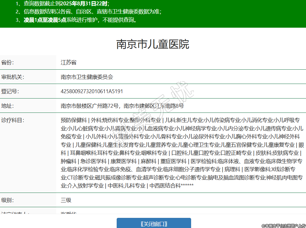 省份:江蘇省審批機關:南京市衛(wèi)生健康委員會登記號:42580092732010611A5191地址:南京市鼓樓區(qū)廣州路72號,南京市建鄴區(qū)江東南路8號診療科目:預防保健科 | 外科;燒傷科專業(yè);整形外科專業(yè) | 兒科;新生兒專業(yè);小兒傳染病專業(yè);小兒消化專業(yè);小兒呼吸專業(yè);小兒心臟病專業(yè);小兒腎病專業(yè);小兒血液病專業(yè);小兒神經(jīng)病學專業(yè);小兒內(nèi)分泌專業(yè);小兒遺傳病專業(yè);小兒免疫專業(yè) | 小兒外科;小兒普通外科專業(yè);小兒骨科專業(yè);小兒泌尿外科專業(yè);小兒胸心外科專業(yè);小兒神經(jīng)外科專業(yè) | 兒童保健科;兒童生長發(fā)育專業(yè);兒童營養(yǎng)專業(yè);兒童心理衛(wèi)生專業(yè);兒童五官保健專業(yè);兒童康復專業(yè) | 眼科 | 耳鼻咽喉科;耳科專業(yè);鼻科專業(yè);咽喉科專業(yè) | 口腔科;兒童口腔專業(yè);口腔正畸專業(yè) | 皮膚科;皮膚病專業(yè) | 腫瘤科 | 急診醫(yī)學科 | 康復醫(yī)學科 | 麻醉科 | 重癥醫(yī)學科 | 醫(yī)學檢驗科;臨床體液、血液專業(yè);臨床微生物學專業(yè);臨床化學檢驗專業(yè);臨床免疫、血清學專業(yè);臨床細胞分子遺傳學專業(yè) | 病理科 | 醫(yī)學影像科;X線診斷專業(yè);CT診斷專業(yè);磁共振成像診斷專業(yè);超聲診斷專業(yè);心電診斷專業(yè);腦電及腦血流圖診斷專業(yè);神經(jīng)肌肉電圖專業(yè);介入放射學專業(yè) | 中醫(yī)科;兒科專業(yè) | 中西醫(yī)結合科******級別:三級法定代表人:張愛華主要負責人:張愛華執(zhí)業(yè)許可證有效期:2023/05/19 -至- 2034/09/08 -