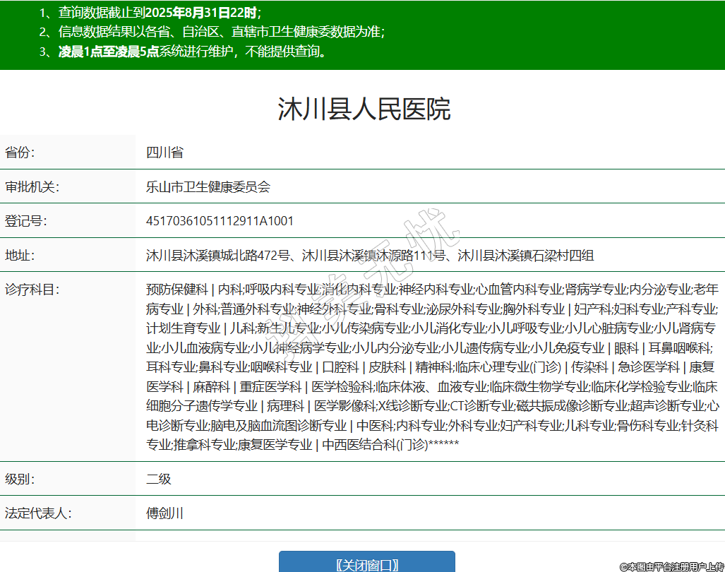 省份:四川省審批機關:樂山市衛(wèi)生健康委員會登記號:45170361051112911A1001地址:沐川縣沐溪鎮(zhèn)城北路472號、沐川縣沐溪鎮(zhèn)沐源路111號、沐川縣沐溪鎮(zhèn)石梁村四組診療科目:預防保健科 | 內(nèi)科;呼吸內(nèi)科專業(yè);消化內(nèi)科專業(yè);神經(jīng)內(nèi)科專業(yè);心血管內(nèi)科專業(yè);腎病學專業(yè);內(nèi)分泌專業(yè);老年病專業(yè) | 外科;普通外科專業(yè);神經(jīng)外科專業(yè);骨科專業(yè);泌尿外科專業(yè);胸外科專業(yè) | 婦產(chǎn)科;婦科專業(yè);產(chǎn)科專業(yè);計劃生育專業(yè) | 兒科;新生兒專業(yè);小兒傳染病專業(yè);小兒消化專業(yè);小兒呼吸專業(yè);小兒心臟病專業(yè);小兒腎病專業(yè);小兒血液病專業(yè);小兒神經(jīng)病學專業(yè);小兒內(nèi)分泌專業(yè);小兒遺傳病專業(yè);小兒免疫專業(yè) | 眼科 | 耳鼻咽喉科;耳科專業(yè);鼻科專業(yè);咽喉科專業(yè) | 口腔科 | 皮膚科 | 精神科;臨床心理專業(yè)(門診) | 傳染科 | 急診醫(yī)學科 | 康復醫(yī)學科 | 麻醉科 | 重癥醫(yī)學科 | 醫(yī)學檢驗科;臨床體液、血液專業(yè);臨床微生物學專業(yè);臨床化學檢驗專業(yè);臨床細胞分子遺傳學專業(yè) | 病理科 | 醫(yī)學影像科;X線診斷專業(yè);CT診斷專業(yè);磁共振成像診斷專業(yè);超聲診斷專業(yè);心電診斷專業(yè);腦電及腦血流圖診斷專業(yè) | 中醫(yī)科;內(nèi)科專業(yè);外科專業(yè);婦產(chǎn)科專業(yè);兒科專業(yè);骨傷科專業(yè);針灸科專業(yè);推拿科專業(yè);康復醫(yī)學專業(yè) | 中西醫(yī)結合科(門診)******級別:二級法定代表人:傅劍川主要負責人:傅劍川執(zhí)業(yè)許可證有效期:2023/08/10 -至- 2026/12/19 -