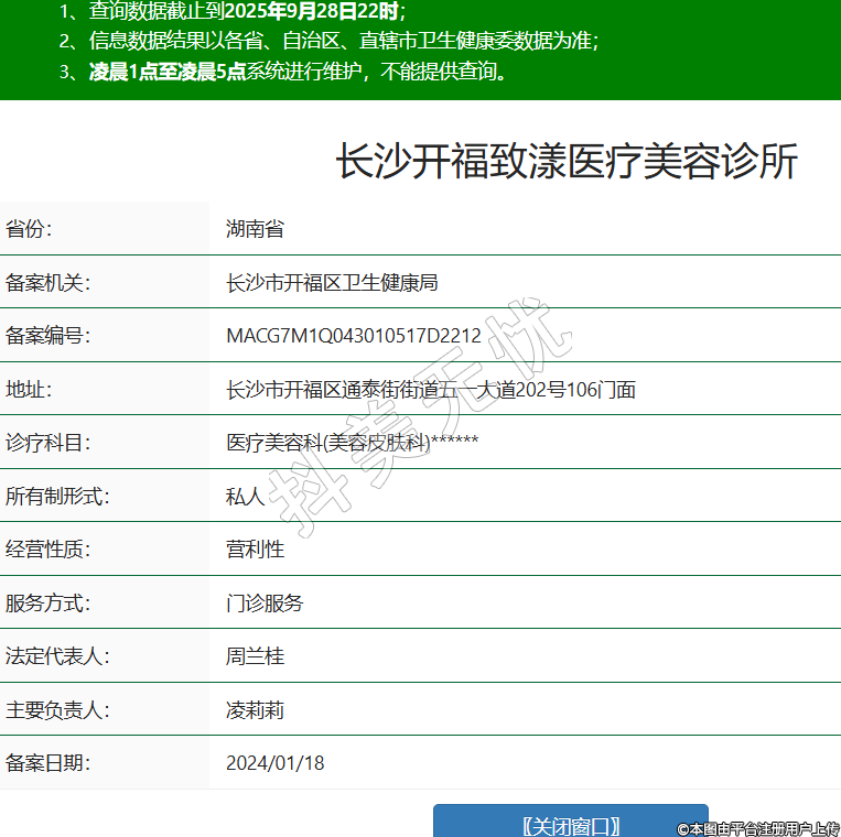 省份:湖南省備案機(jī)關(guān):長沙市開福區(qū)衛(wèi)生健康局備案編號:MACG7M1Q043010517D2212地址:長沙市開福區(qū)通泰街街道五一大道202號106門面診療科目:醫(yī)療美容科(美容皮膚科)******所有制形式:私人經(jīng)營性質(zhì):營利性服務(wù)方式:門診服務(wù)法定代表人:周蘭桂主要負(fù)責(zé)人:凌莉莉備案日期:2024/01/18 -