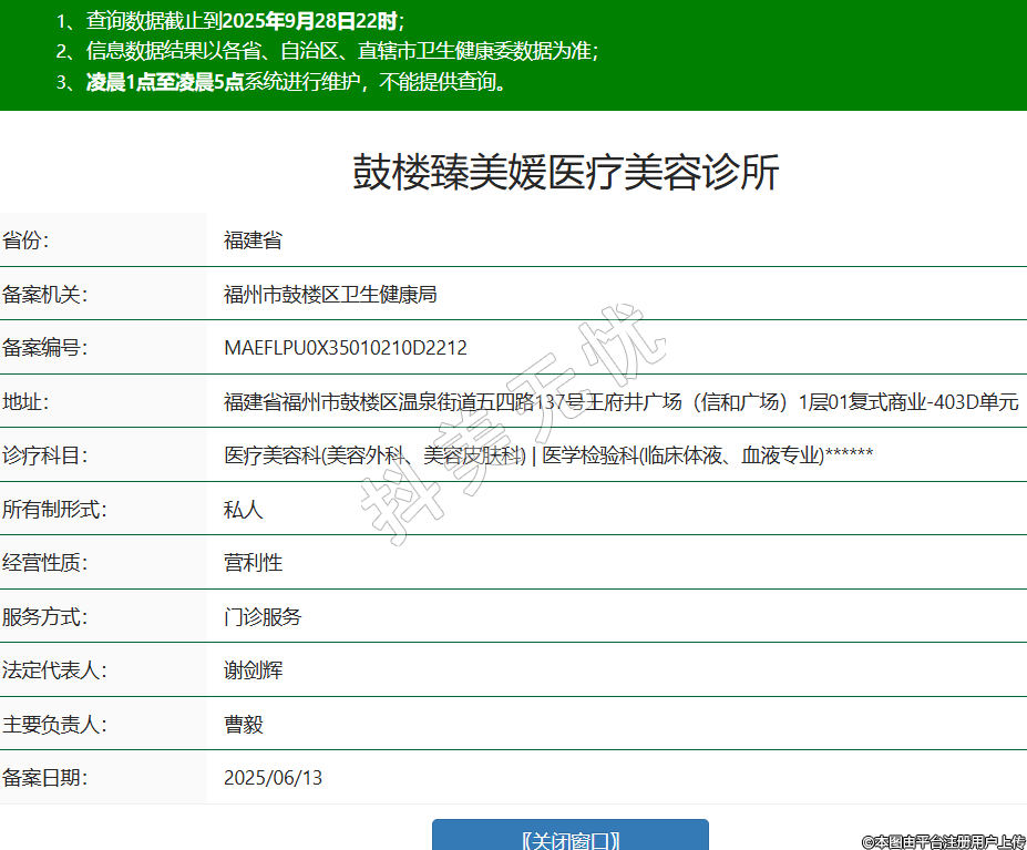 省份:福建省備案機關(guān):福州市鼓樓區(qū)衛(wèi)生健康局備案編號:MAEFLPU0X35010210D2212地址:福建省福州市鼓樓區(qū)溫泉街道五四路137號王府井廣場(信和廣場)1層01復(fù)式商業(yè)-403D單元診療科目:醫(yī)療美容科(美容外科、美容皮膚科) | 醫(yī)學(xué)檢驗科(臨床體液、血液專業(yè))******所有制形式:私人經(jīng)營性質(zhì):營利性服務(wù)方式:門診服務(wù)法定代表人:謝劍輝主要負責(zé)人:曹毅備案日期:2025/06/13 -