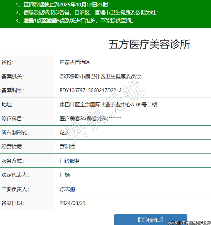 省份:內(nèi)蒙古自治區(qū)備案機關(guān):鄂爾多斯市康巴什區(qū)衛(wèi)生健康委員會備案編號:PDY10679715060217D2212地址:康巴什區(qū)金宸國際商業(yè)商業(yè)中心A-09號二樓診療科目:醫(yī)療美容科(美容外科)******所有制形式:私人經(jīng)營性質(zhì):營利性服務(wù)方式:門診服務(wù)法定代表人:白楊主要負責(zé)人:陳志鵬備案日期:2024/08/23 -