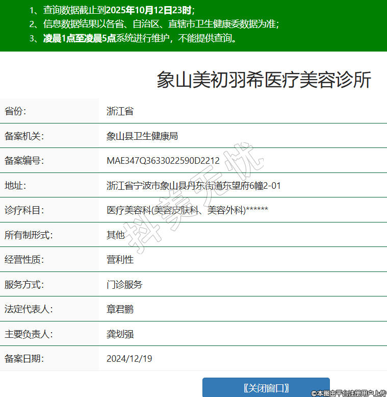 省份:浙江省備案機(jī)關(guān):象山縣衛(wèi)生健康局備案編號(hào):MAE347Q3633022590D2212地址:浙江省寧波市象山縣丹東街道東望府6幢2-01診療科目:醫(yī)療美容科(美容皮膚科、美容外科)******所有制形式:其他經(jīng)營性質(zhì):營利性服務(wù)方式:門診服務(wù)法定代表人:章君鵬主要負(fù)責(zé)人:龔劃強(qiáng)備案日期:2024/12/19 -