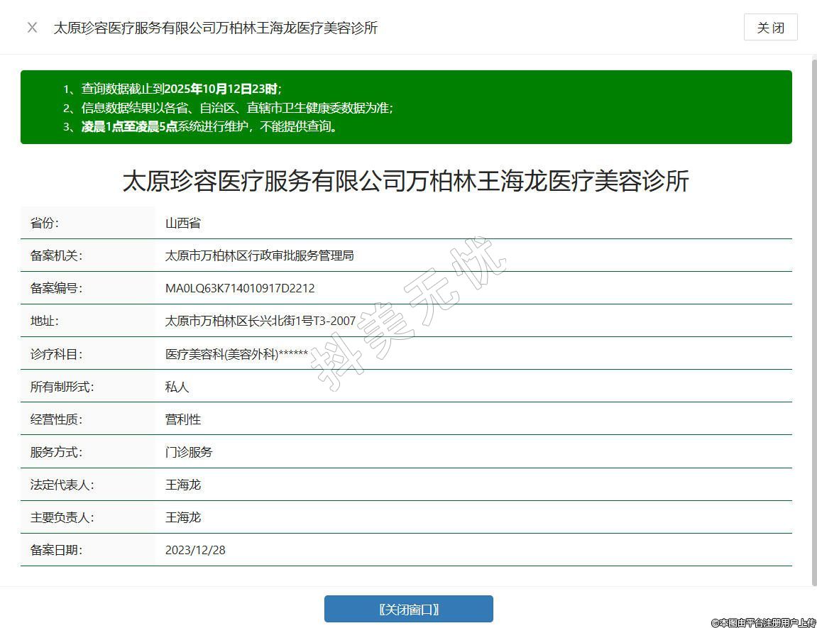 太原珍容醫(yī)療服務(wù)有限公司萬柏林王海龍醫(yī)療美容診所