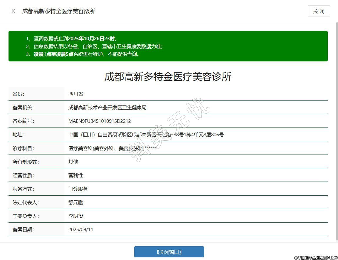 成都高新多特金醫(yī)療美容診所成立于2025年,位于中國(四川)自由貿(mào)易試驗(yàn)區(qū)成都高新區(qū)天仁路388號1棟4單元8層806號,是經(jīng)批準(zhǔn)設(shè)立的合規(guī)醫(yī)療美容機(jī)構(gòu),配備合規(guī)診療設(shè)施與專業(yè)醫(yī)護(hù)團(tuán)隊(duì),業(yè)務(wù)范圍涵蓋醫(yī)療美容服務(wù)、生活美容服務(wù)等許可項(xiàng)目,秉持合規(guī)經(jīng)營理念,建立完善的醫(yī)療質(zhì)量與安全管理制度,堅(jiān)守明碼標(biāo)價原則,以規(guī)范服務(wù)為愛美人士提供安心的醫(yī)療美容體驗(yàn)。