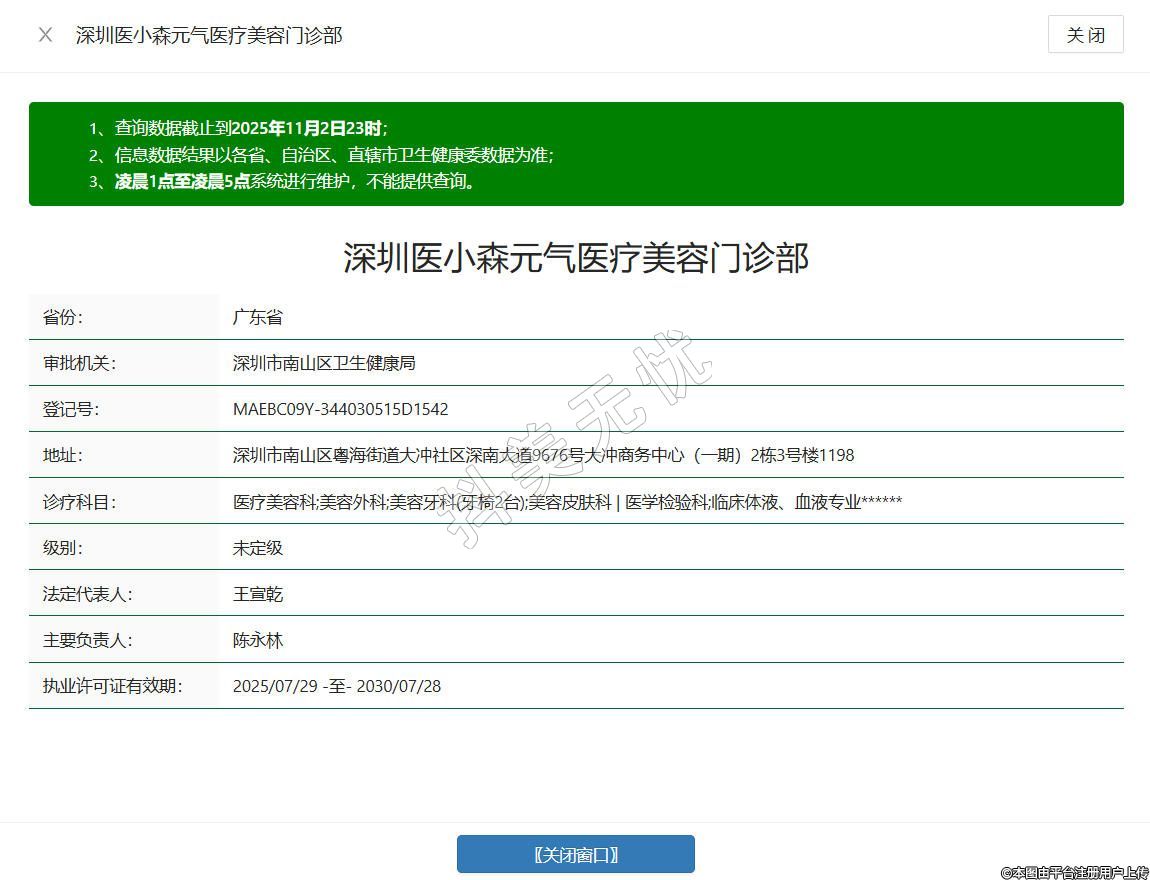 深圳醫(yī)小森元氣醫(yī)療美容門診部成立于2025年,位于深圳市南山區(qū)粵海街道大沖社區(qū)深南大道9676號大沖商務(wù)中心(一期)2棟3號樓1198,是經(jīng)深圳市市場監(jiān)督管理局核準設(shè)立的正規(guī)醫(yī)療美容機構(gòu),秉承 “安全、正規(guī)、自然” 的核心理念,配備經(jīng)驗豐富的專業(yè)醫(yī)療團隊與精良設(shè)備,服務(wù)范圍涵蓋美容外科、美容皮膚科等多個領(lǐng)域,包括美膚抗衰、激光祛斑、眼部整形、鼻部整形等多元項目。