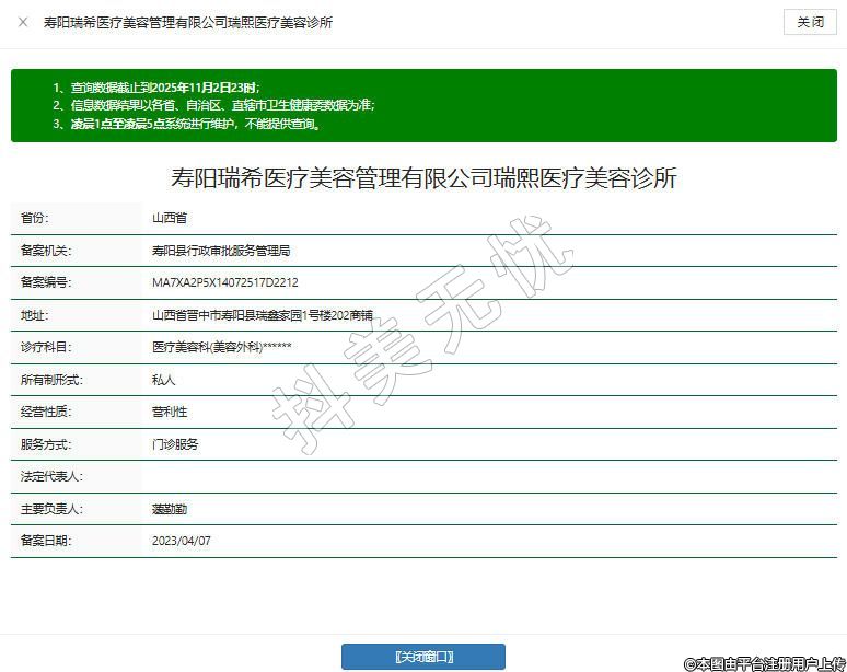 壽陽瑞希醫(yī)療美容管理有限公司瑞熙醫(yī)療美容診所
