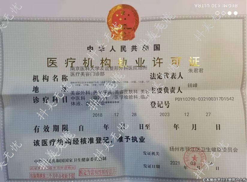 發(fā)證機(jī)關(guān):揚(yáng)州市邗江區(qū)衛(wèi)生健康委員會