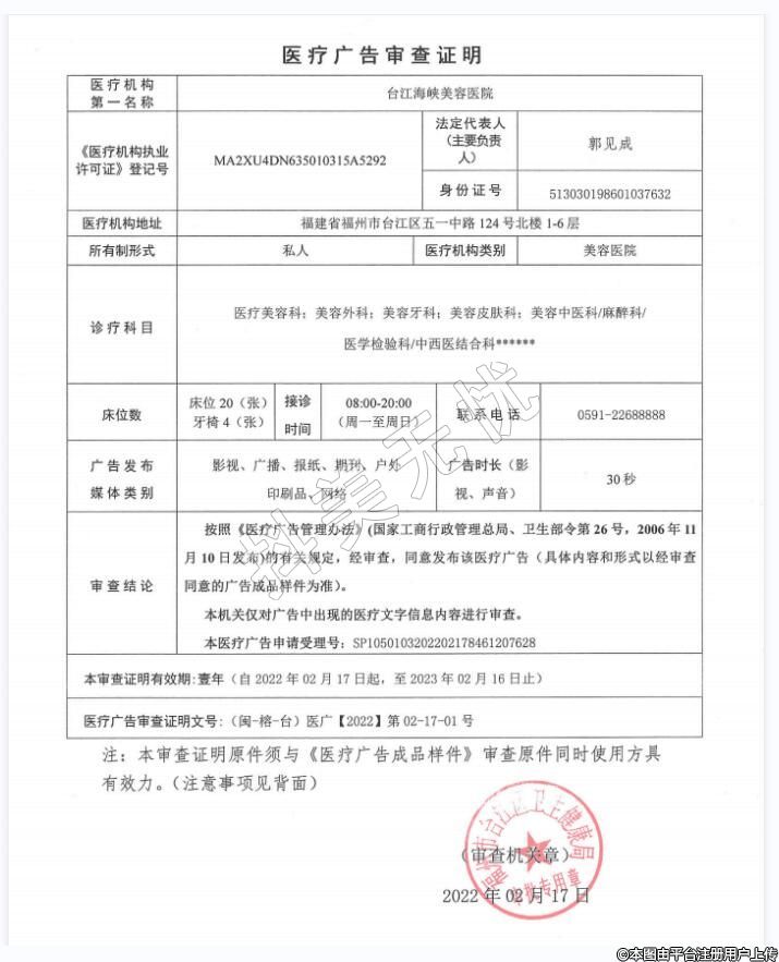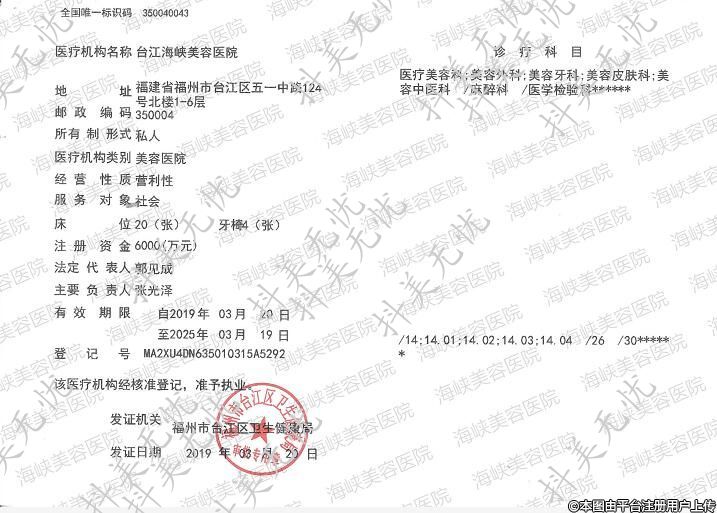診療科目:醫(yī)療美容科;美容外科,美容牙科;美容皮膚科;美容中醫(yī)科/麻醉科/醫(yī)學檢驗科******