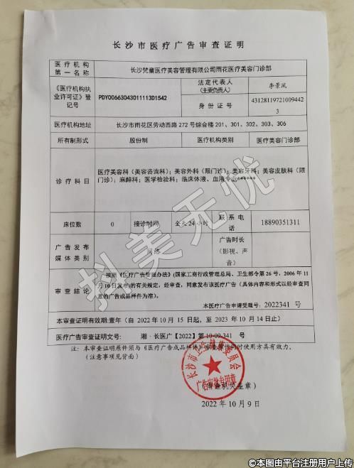 機(jī)構(gòu)名稱:長(zhǎng)沙焚童醫(yī)療美容管理有限公司雨花區(qū)醫(yī)療美容門診部。