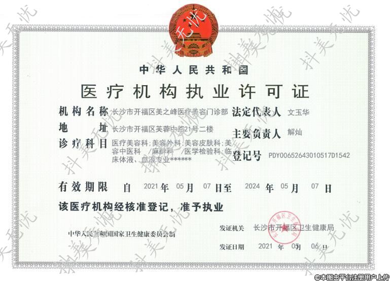 機(jī)構(gòu)名稱:長(zhǎng)沙市開(kāi)福區(qū)美之峰醫(yī)療美容門(mén)診部