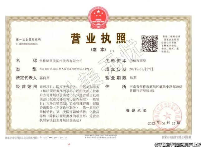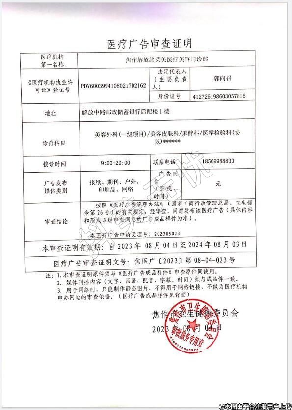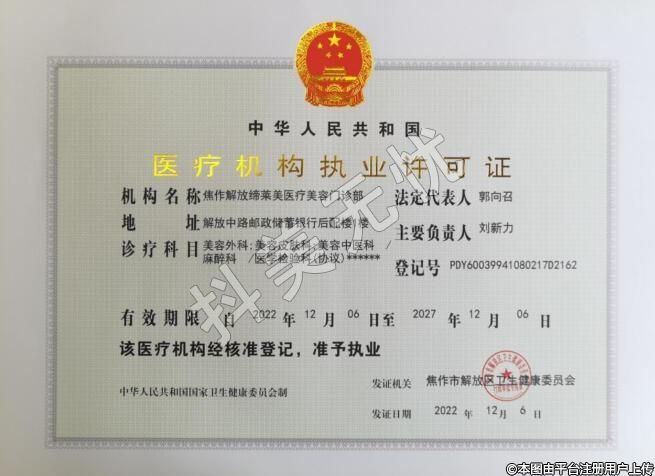發(fā)證機(jī)關(guān):焦作市解放區(qū)衛(wèi)生健康委員會