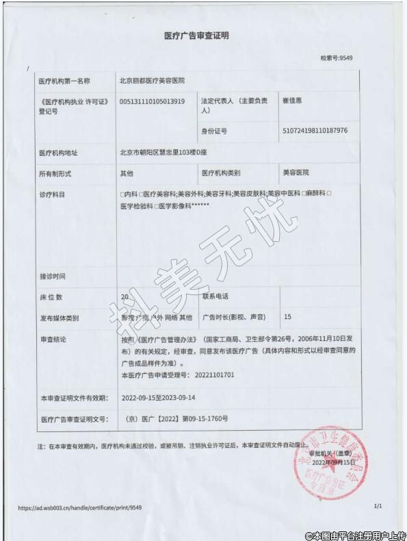 發(fā)證機(jī)關(guān):北京市朝陽區(qū)衛(wèi)生和計劃生育委員會
